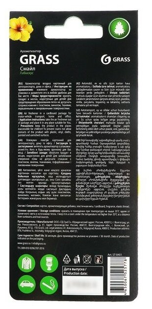 Ароматизатор Воздуха Картонный! Smile Гибискус GraSS арт. ST0401 интересное: