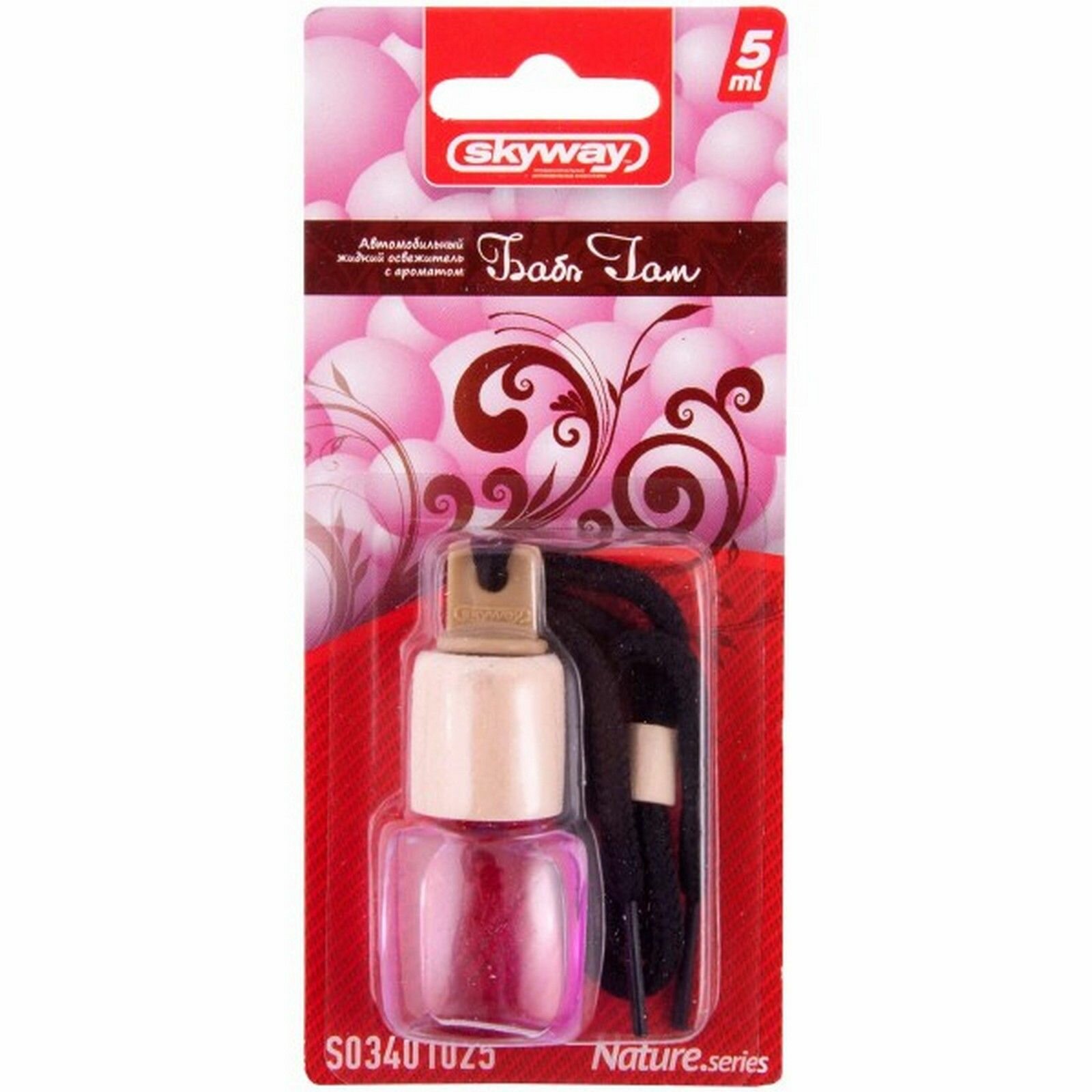 Купить Ароматизатор подвесной (Buble Gum/Бабл Гам) (5 мл) "SKYWAY" Nature.series (бутылочка с деревяной кры