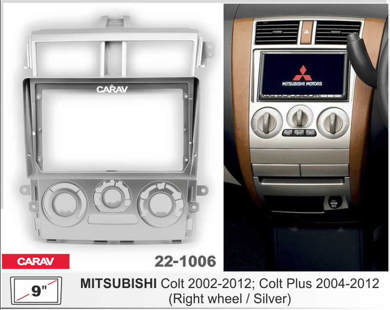 Переходная рамка MITSUBISHI Colt 2002-2012; Colt Plus 2004-2012 (руль справа / серебр.) рамка для автомагнитол 9" дюймов 230:220x130 интересное: