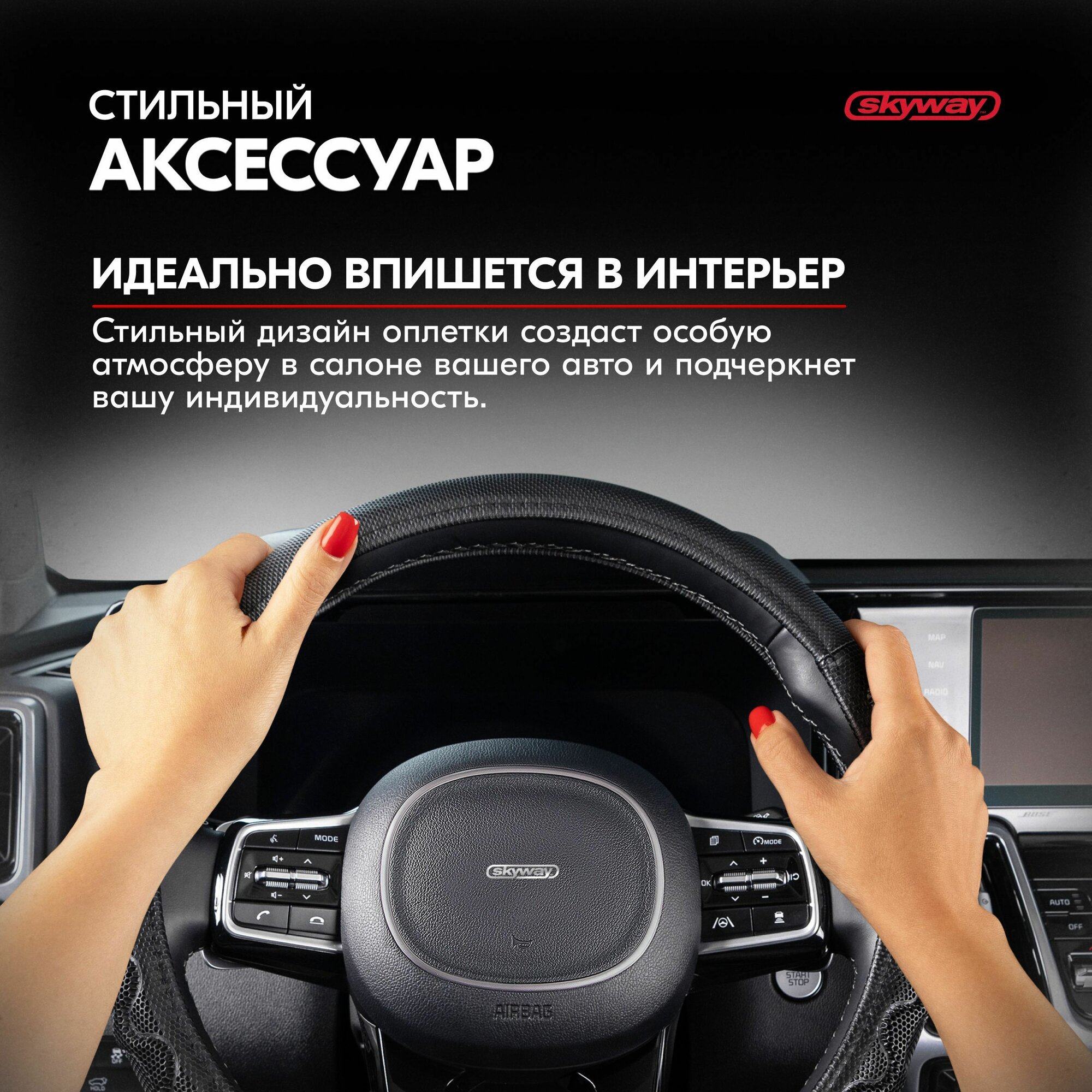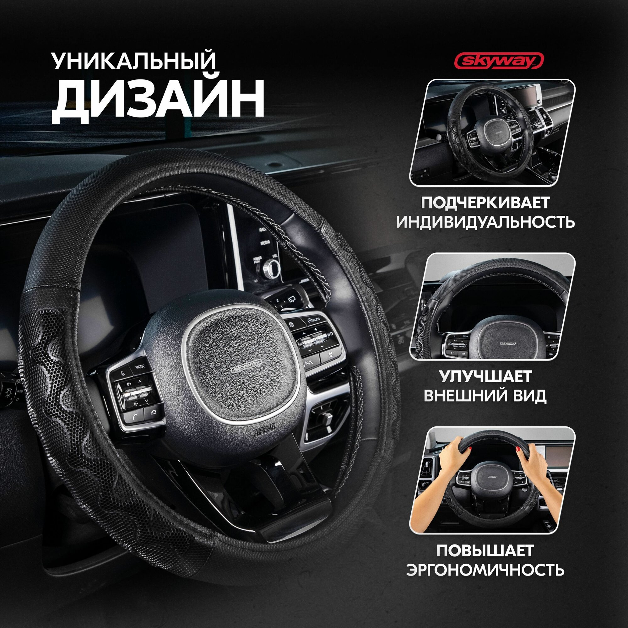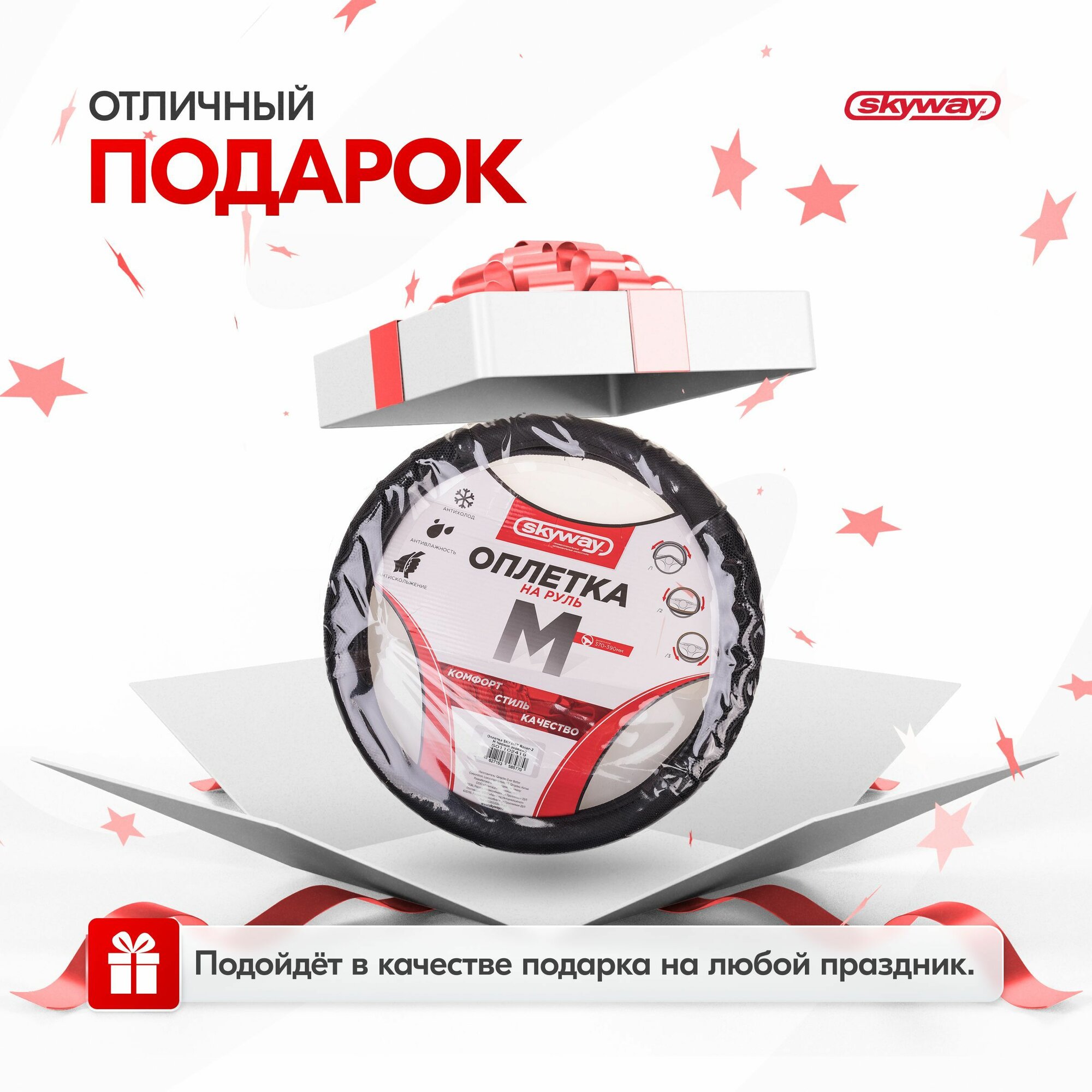 Оплетка руля (M) Racer-2, экокожа, черно-серая S01102417 SKYWAY Китай