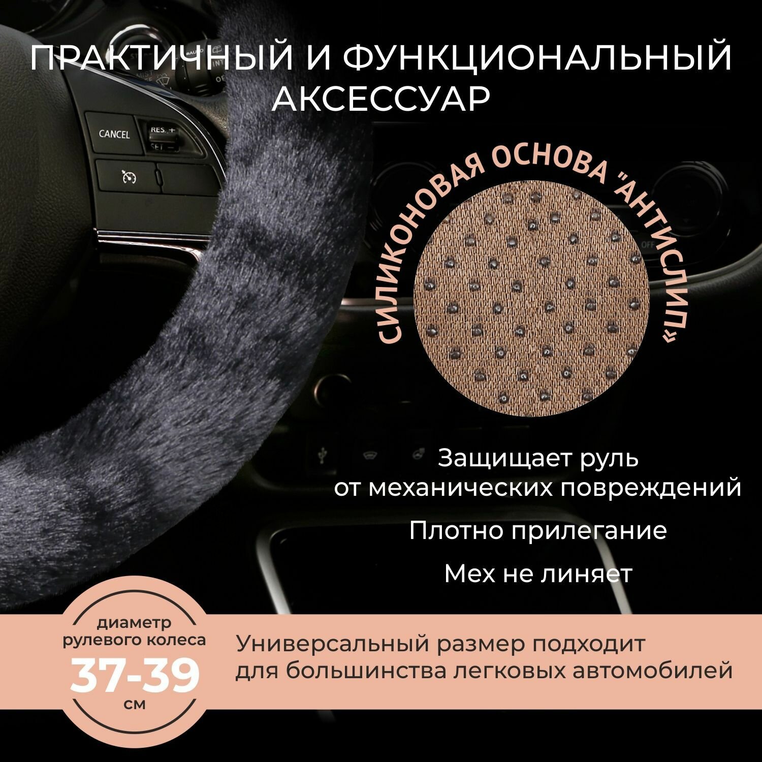 СохранитьОплетка на руль 37-39 см (M) MONA LISA Desire меховая, без обода, чехол на руль автомобиля интересное: