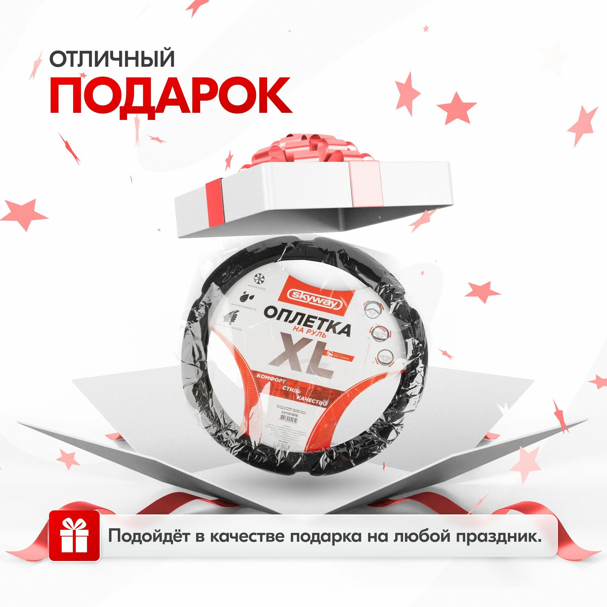 Оплетка на руль Top-12 SKYWAY M (37-39) серый экокожа, S01102501