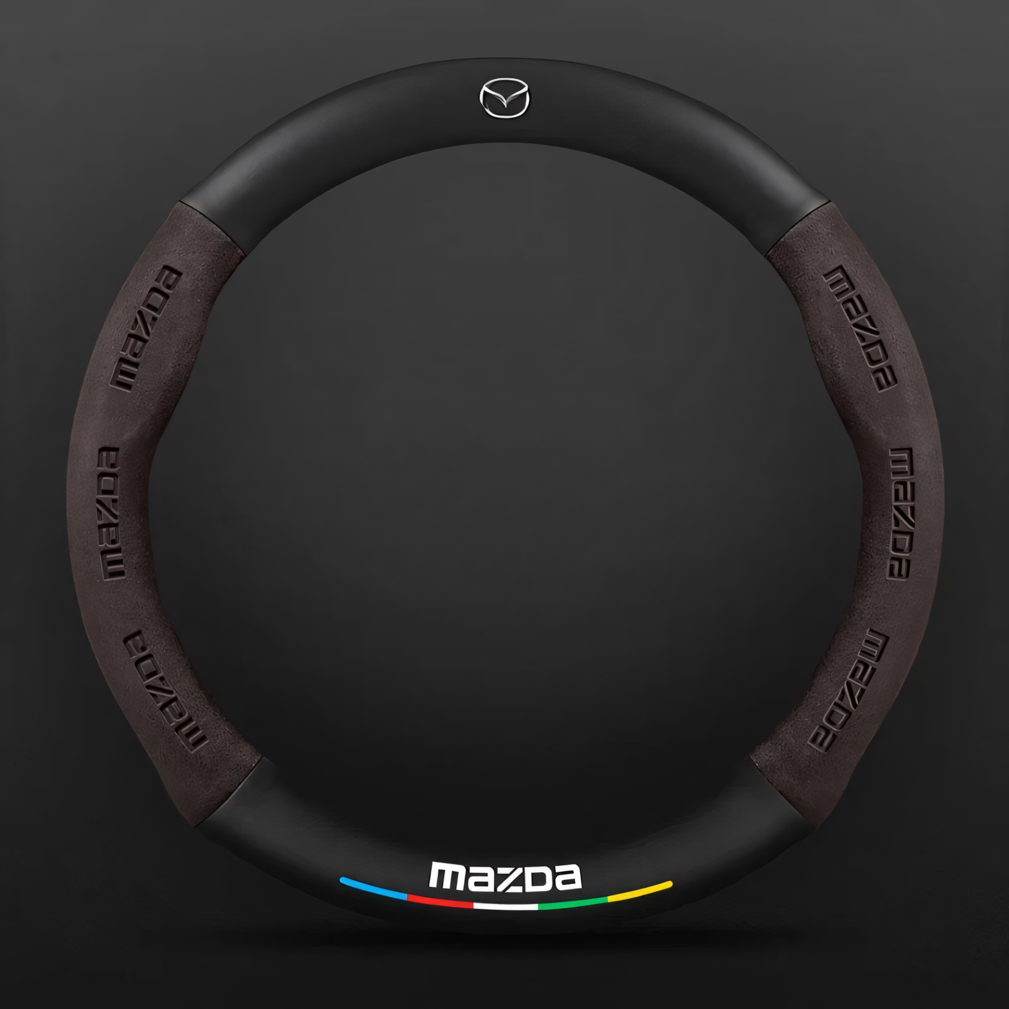 Чехол на руль с логотипом Mazda, гладкая фактура, натуральная кожа, 38 см, коричневый/черный