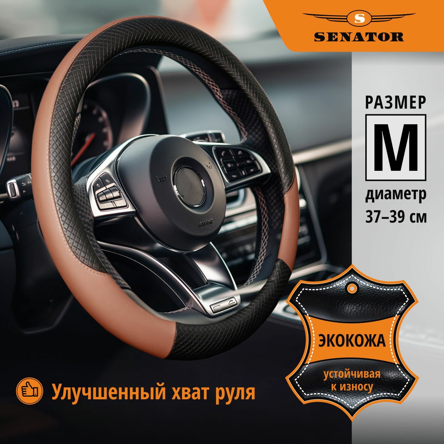 Купить Оплетка на руль 37-39 см SENATOR Laredo "М" чехол на руль автомобиля