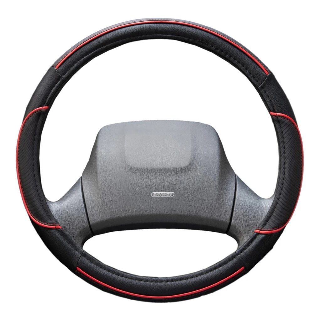 Оплетка на руль Skyway Luxury-1 из экокожи черно-красная 38 см