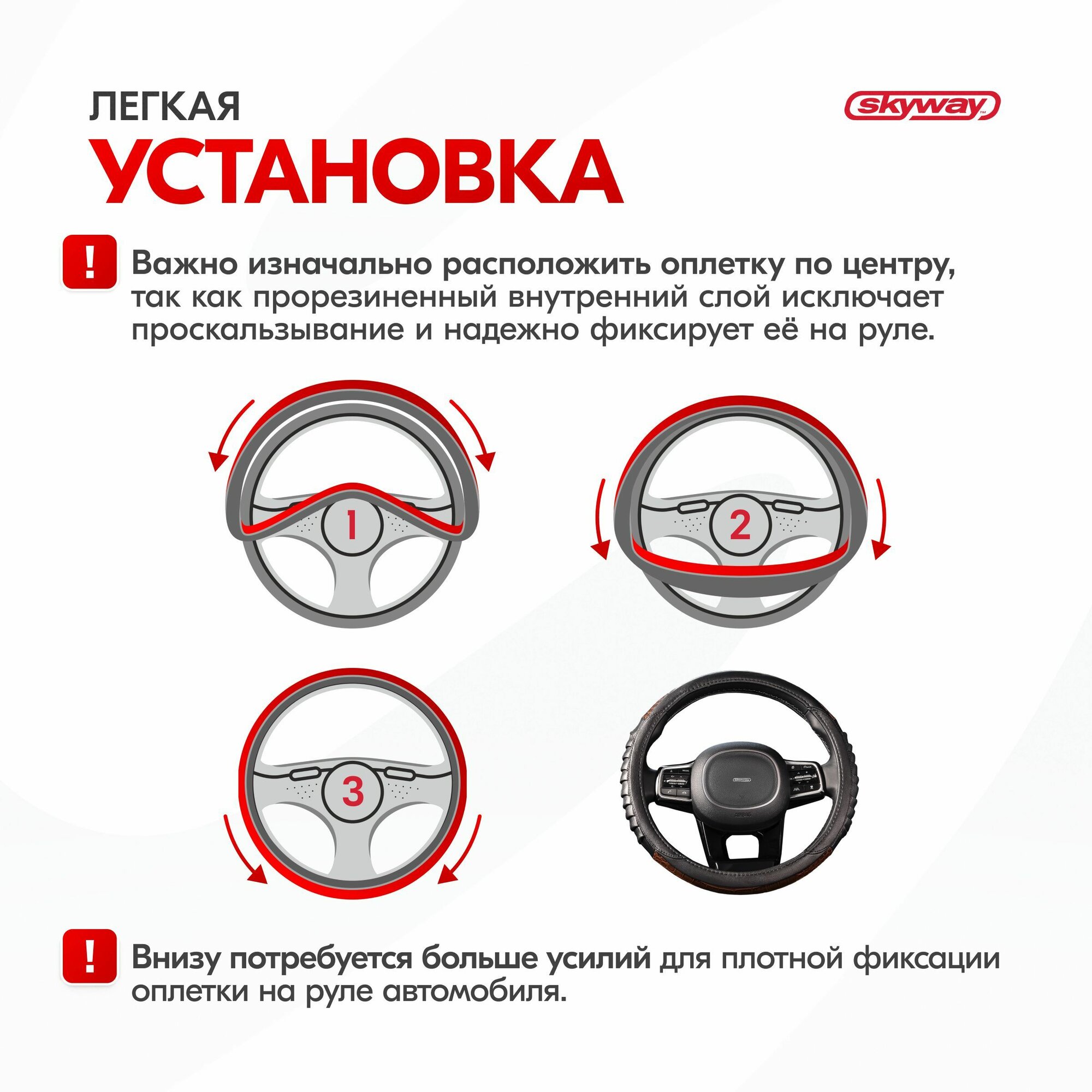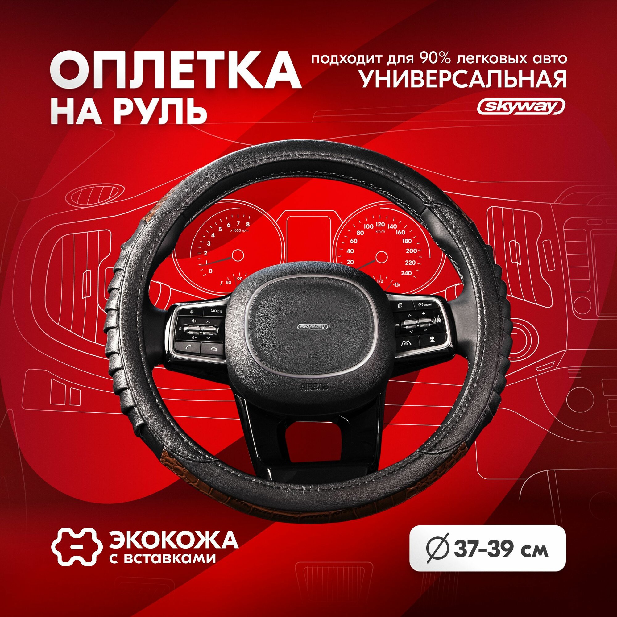 Оплетка на руль Skyway Luxury-1 из экокожи черно-красная 38 см