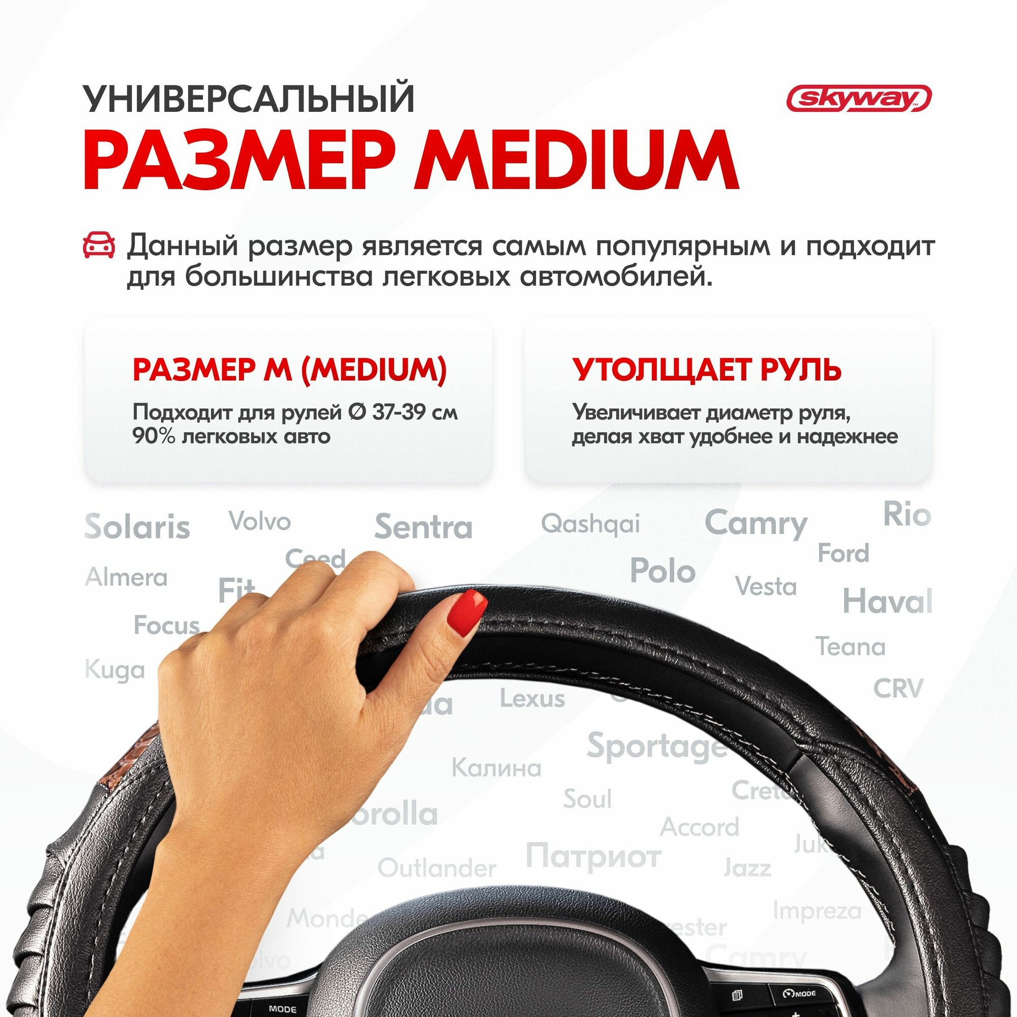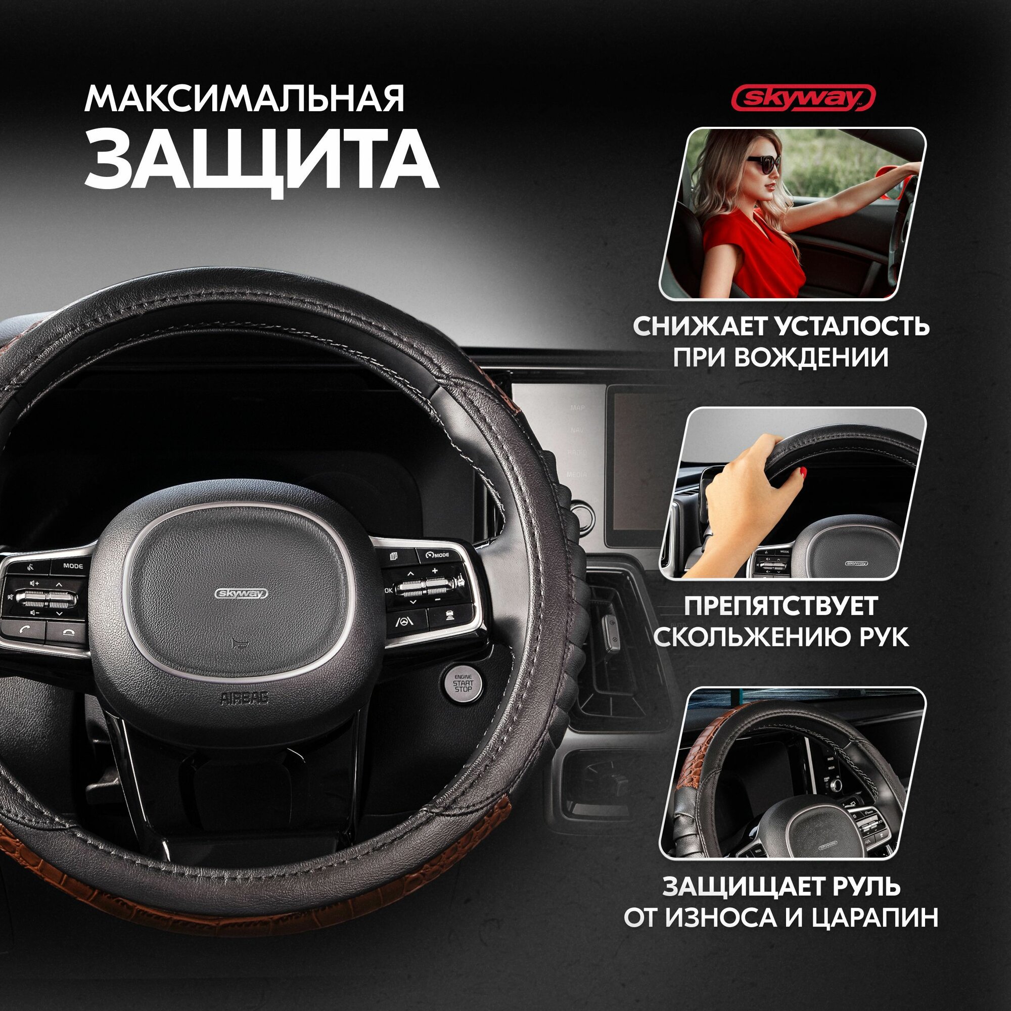 Оплетка на руль Skyway Wood-5 из экокожи черная 38 см интересное: