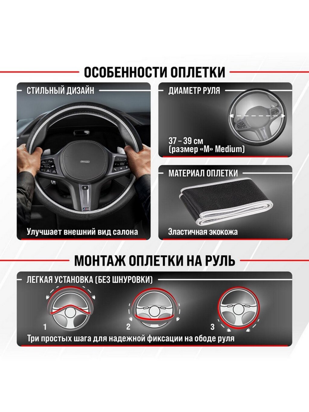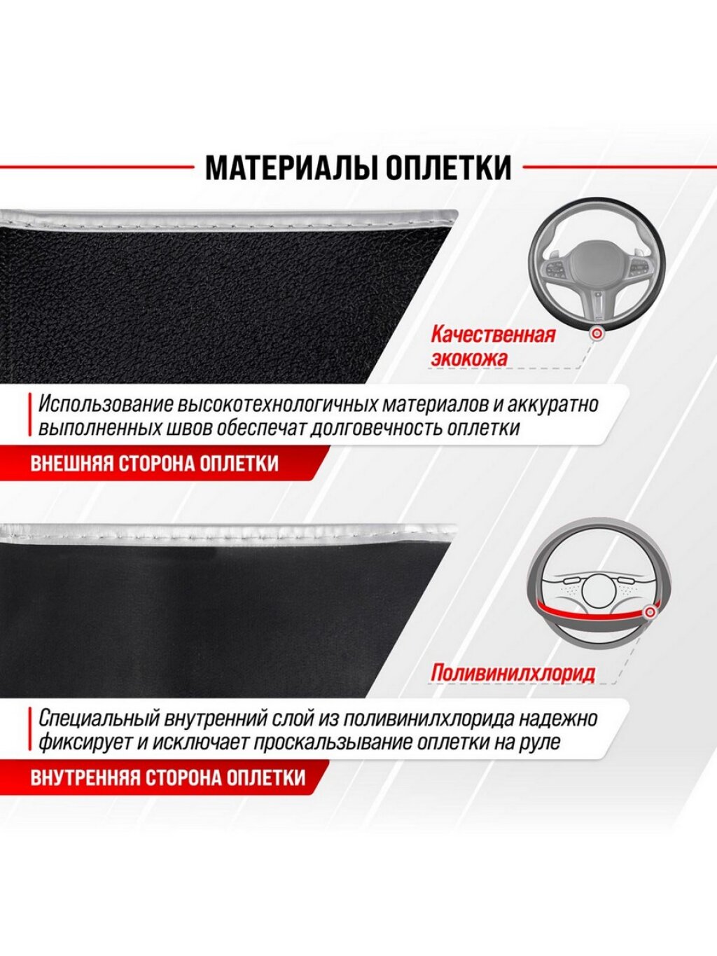 Оплётка руля Skyway Flex-9 Эко кожа серебристый, черный M интересное: