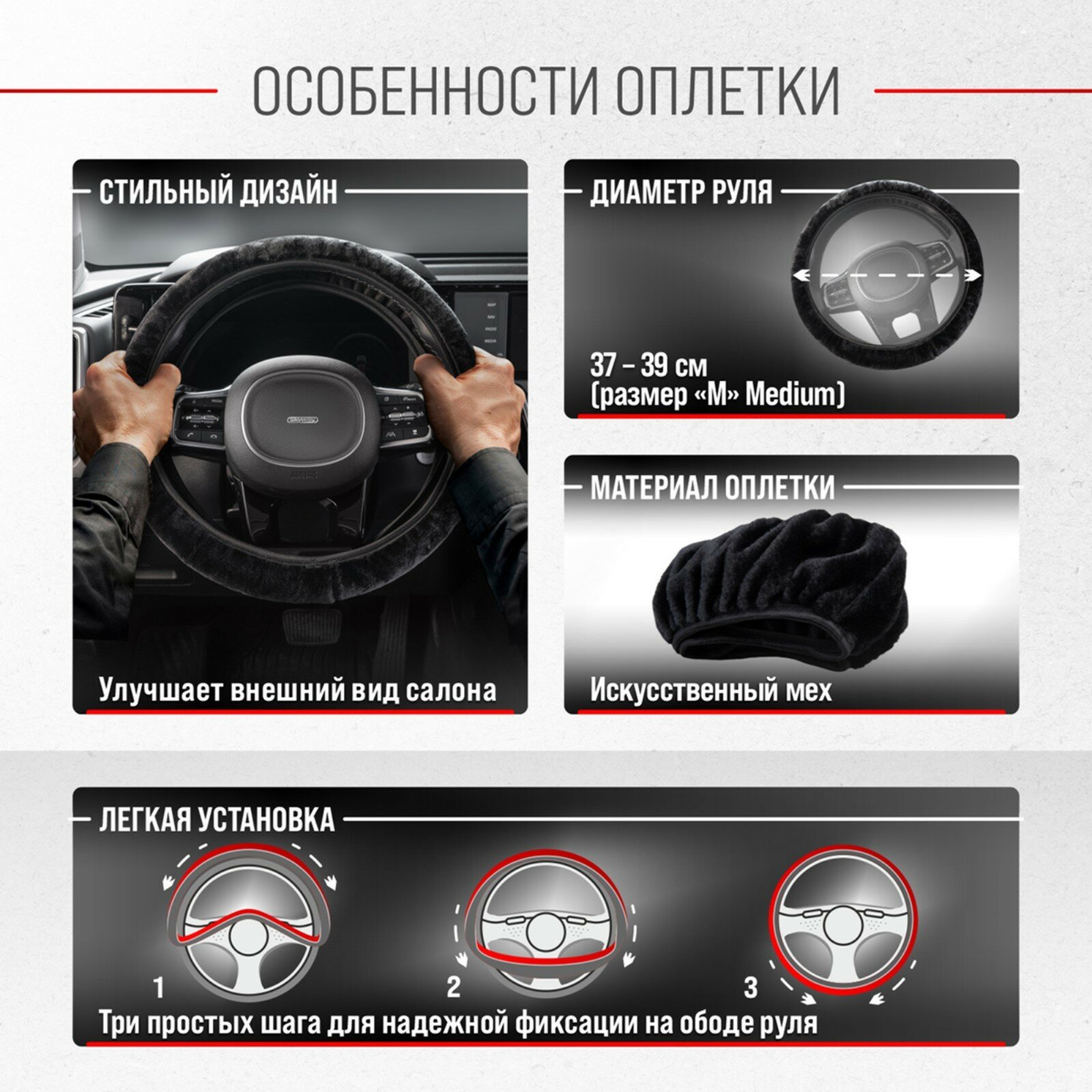 Оплётка руля SKYWAY Arctic-6 искусственный мех Черная М интересное: