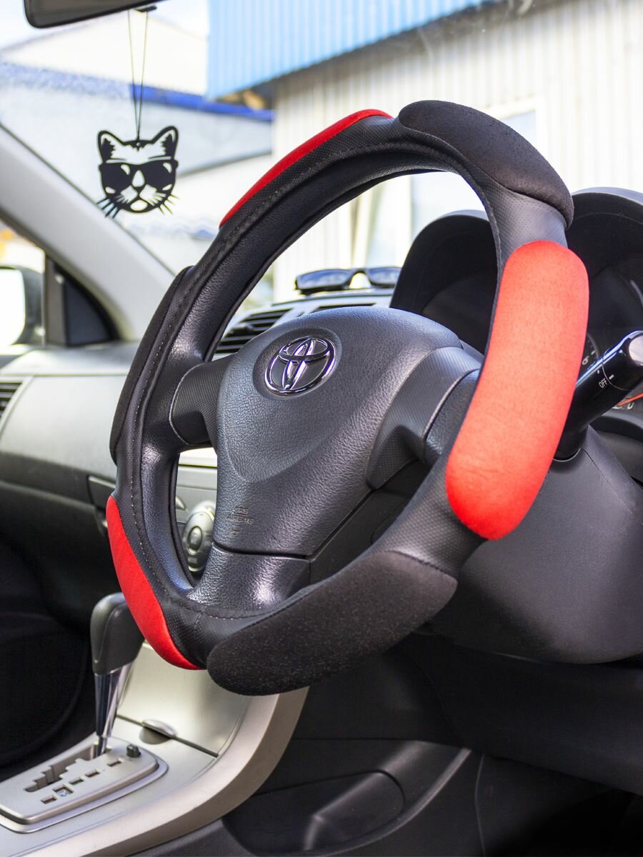 Оплётка руля SPONJ37, для автомобилей, экозамша, красная, 39 см интересное:
