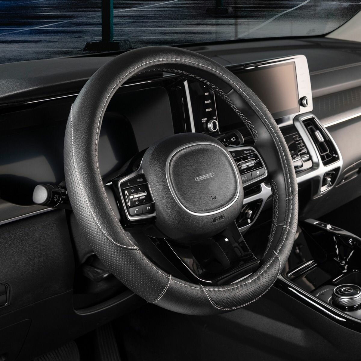 Оплётка руля SKYWAY кожаная Серая с перфорацией (M)