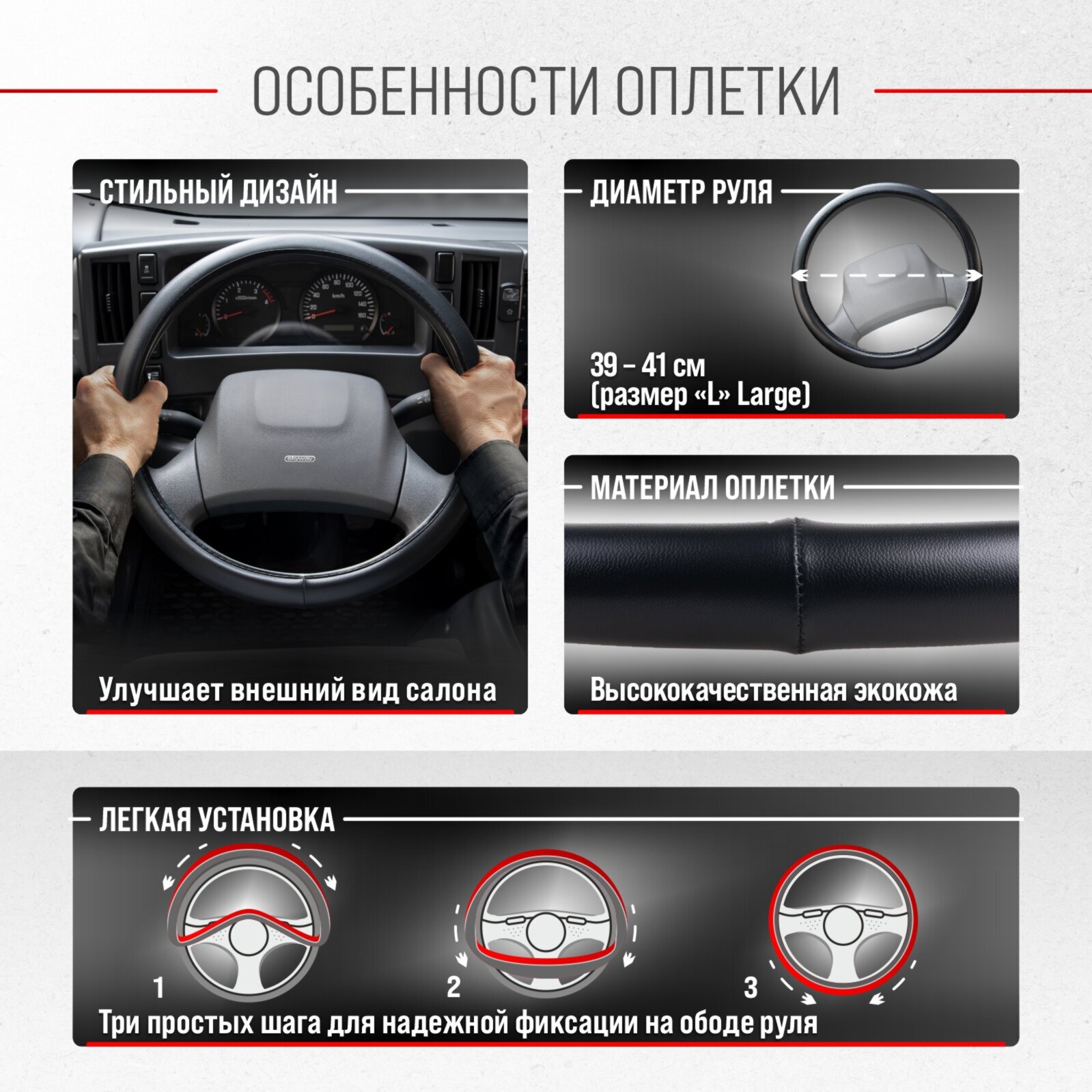Оплётка руля Skyway Top-1 Эко кожа черный L интересное: