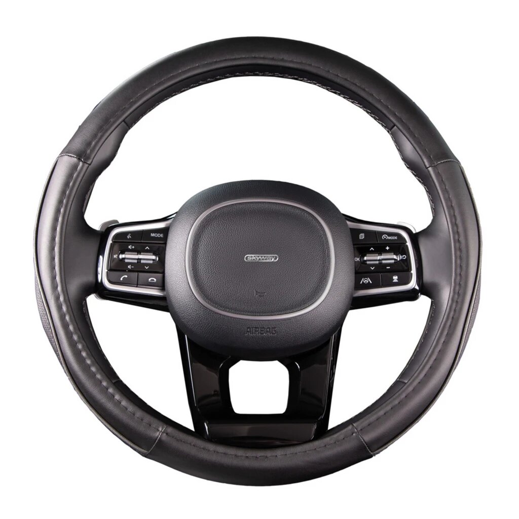Оплетка на руль Top-12 SKYWAY M (37-39) серый экокожа, S01102501
