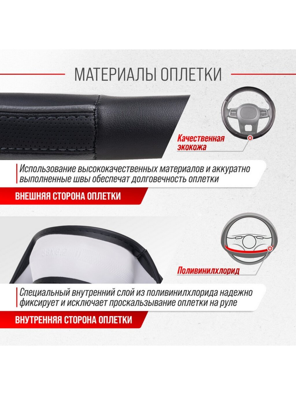 Оплётка руля SKYWAY Combo-7 экокожа Черно/Красная М