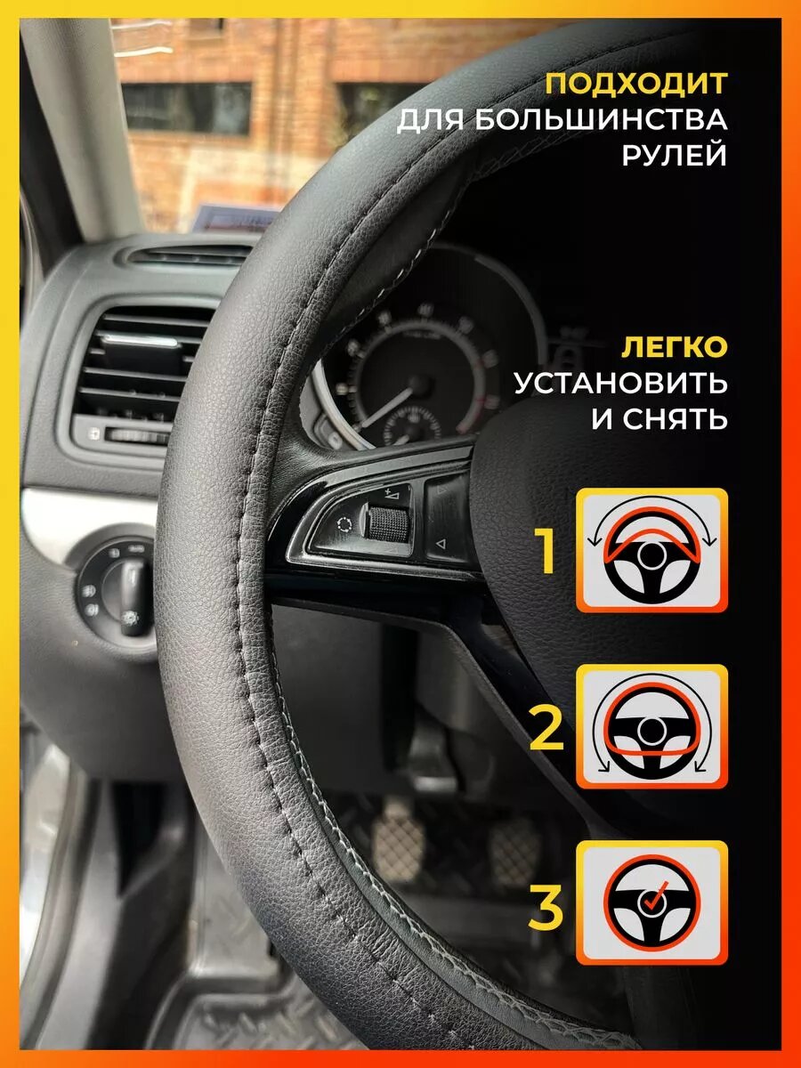 Оплетка на руль Хендай Сантафе 3 (Hyundai Santafe 3), М(37-39см), черный