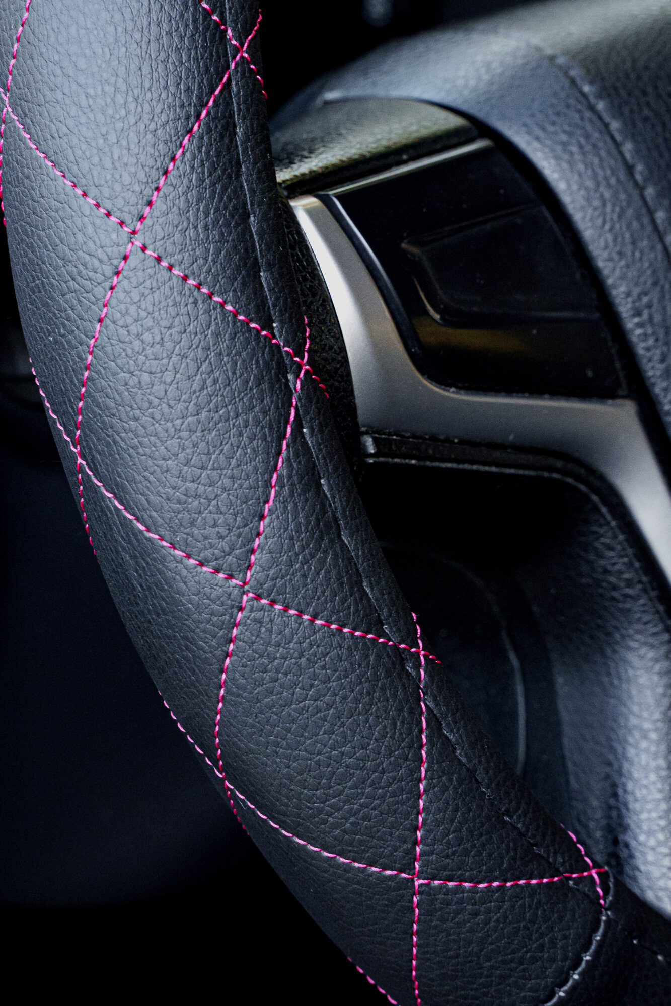 Оплетка на руль 37-39, комб. гладкая черная / спонж красный ромб интересное: