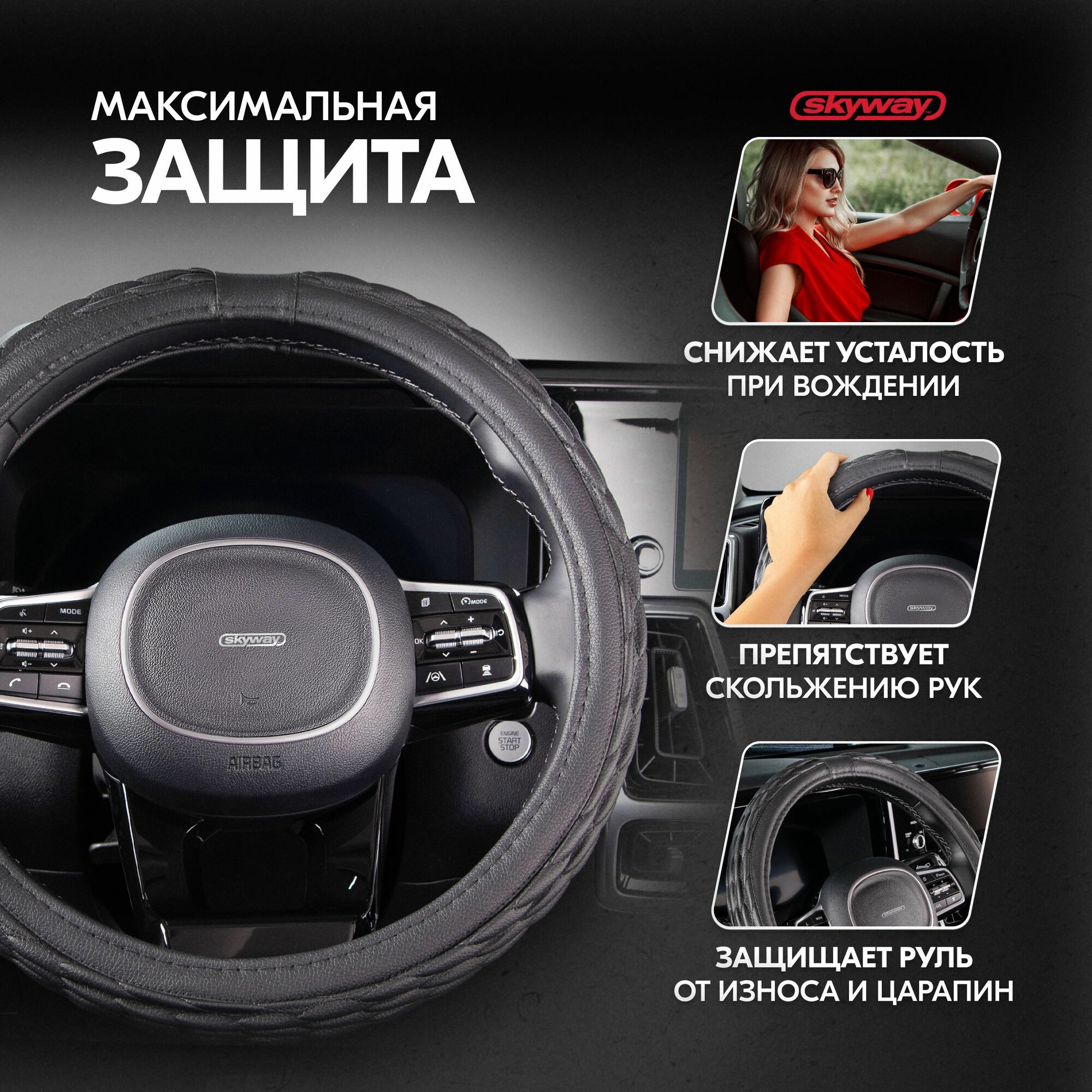 Оплетка на руль Skyway Modern-4 из экокожи черная 38 см интересное: