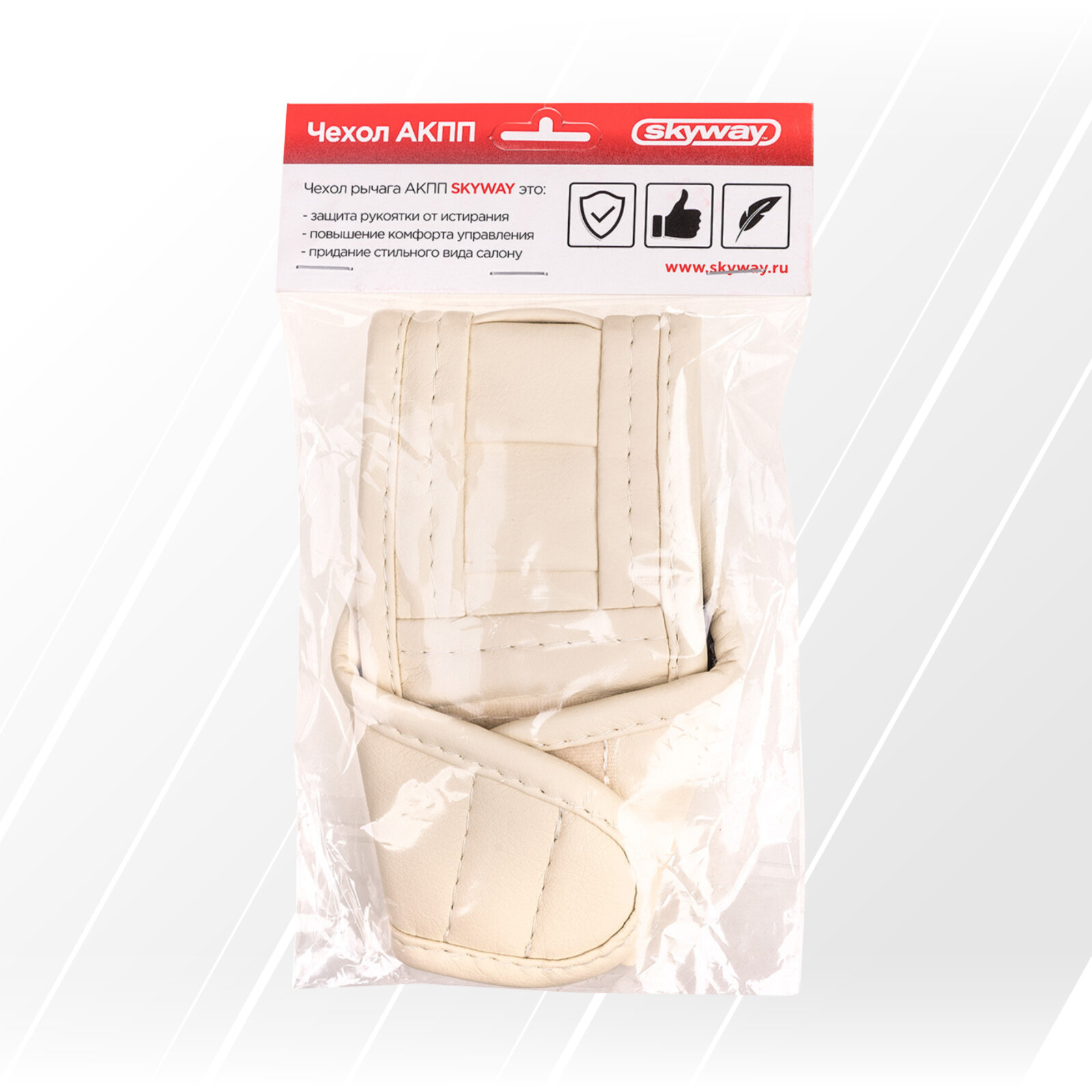 Купить Чехол рычага АКПП SKYWAY кож. зам круглый Слоновая кость