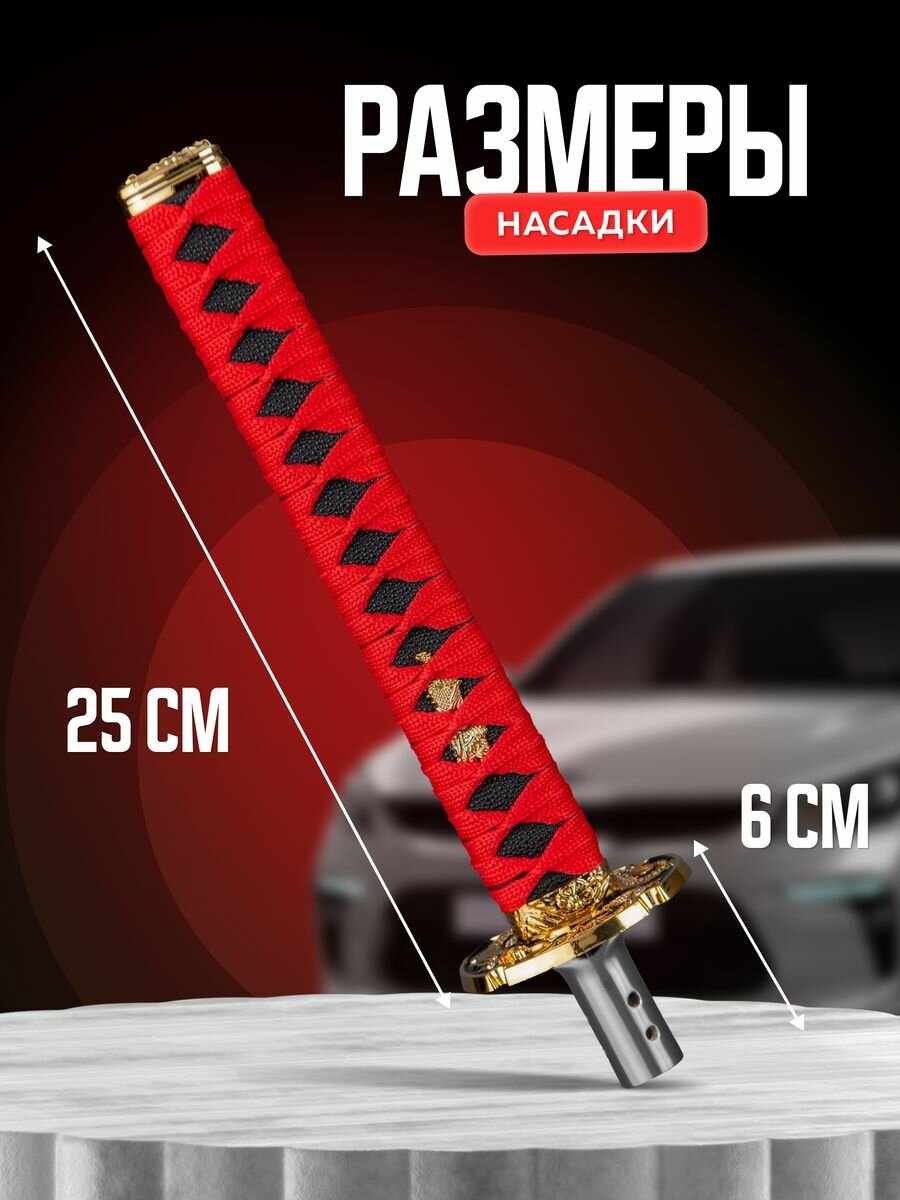 Насадка на ручку кпп универсальная в форме катаны Меч самурая, 20 см, красный