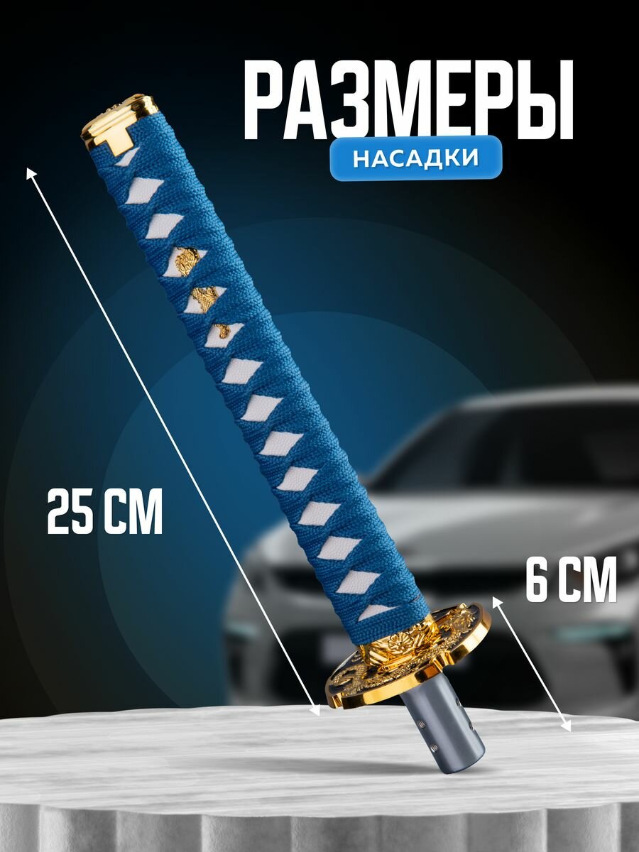 Купить Насадка на ручку кпп универсальная в форме катаны Меч самурая, 25 см, синий