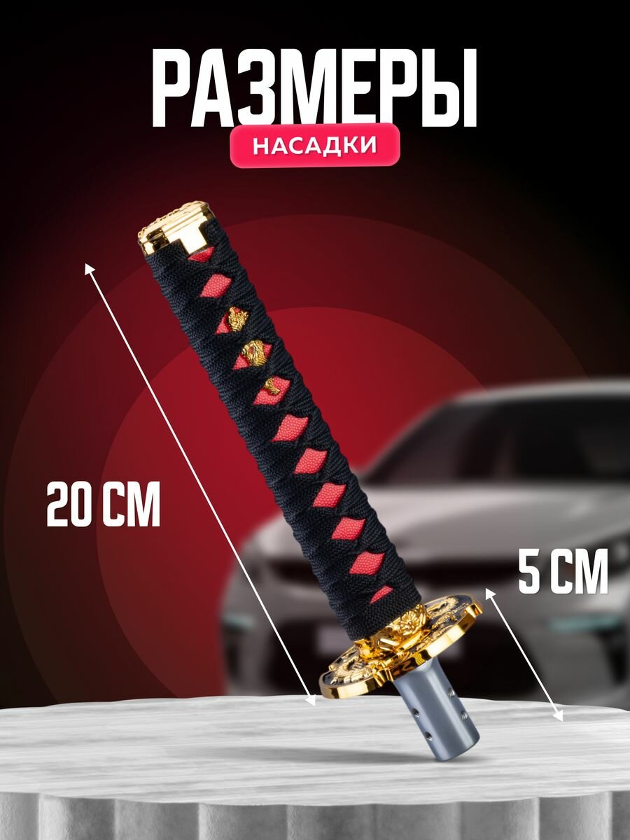 Насадка на ручку кпп универсальная в форме катаны Меч самурая, 20 см, красный