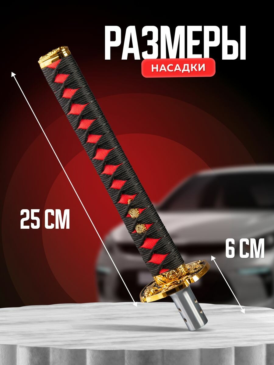 Насадка на ручку кпп универсальная в форме катаны Меч самурая, 20 см, красный