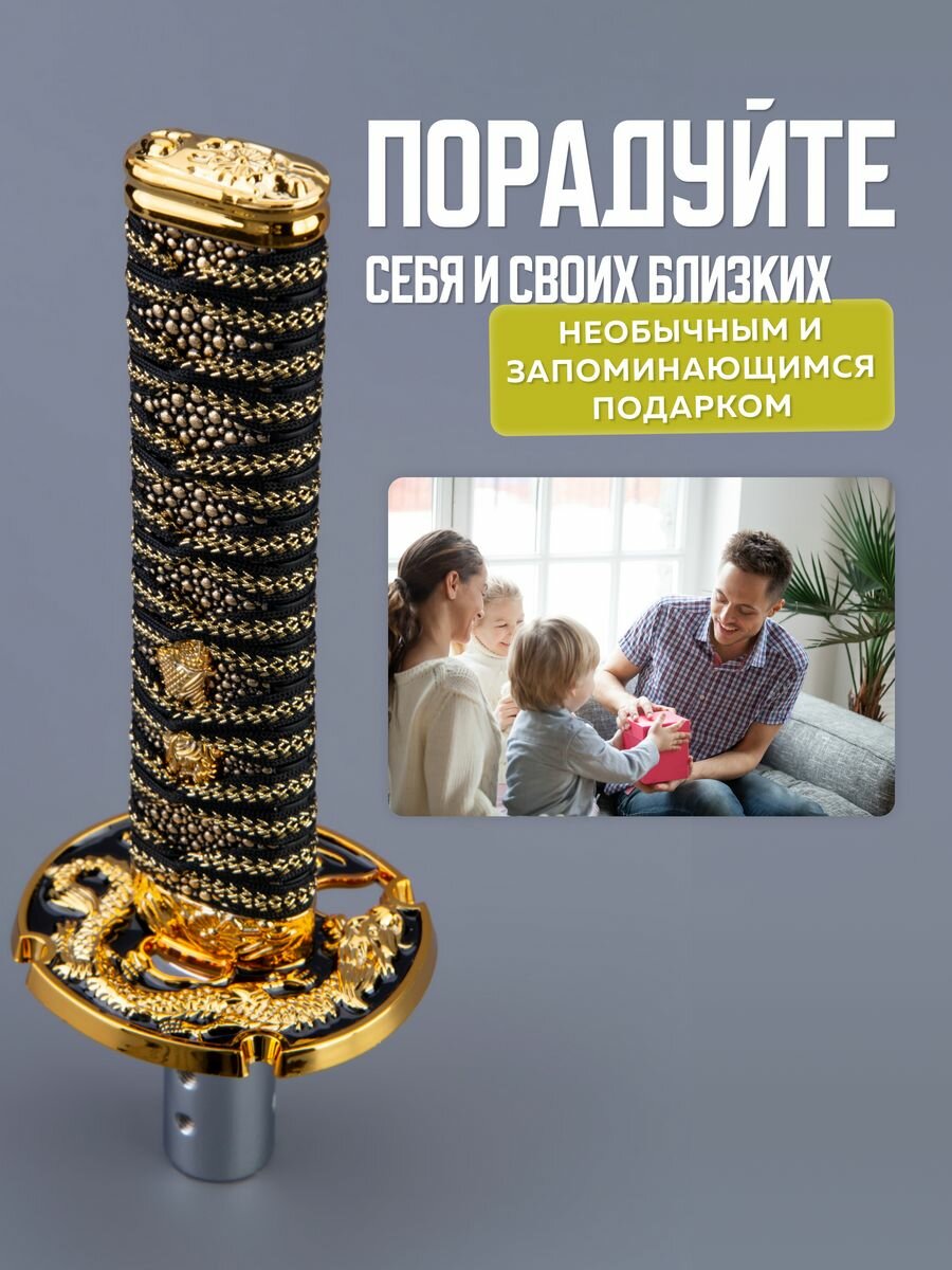 СохранитьНасадка на ручку кпп универсальная в форме катаны Меч самурая, 15 см, золотистый интересное: