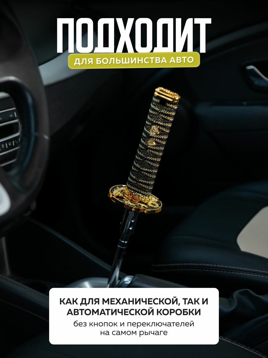 Купить Насадка на ручку кпп универсальная в форме катаны Меч самурая, 15 см, золотистый