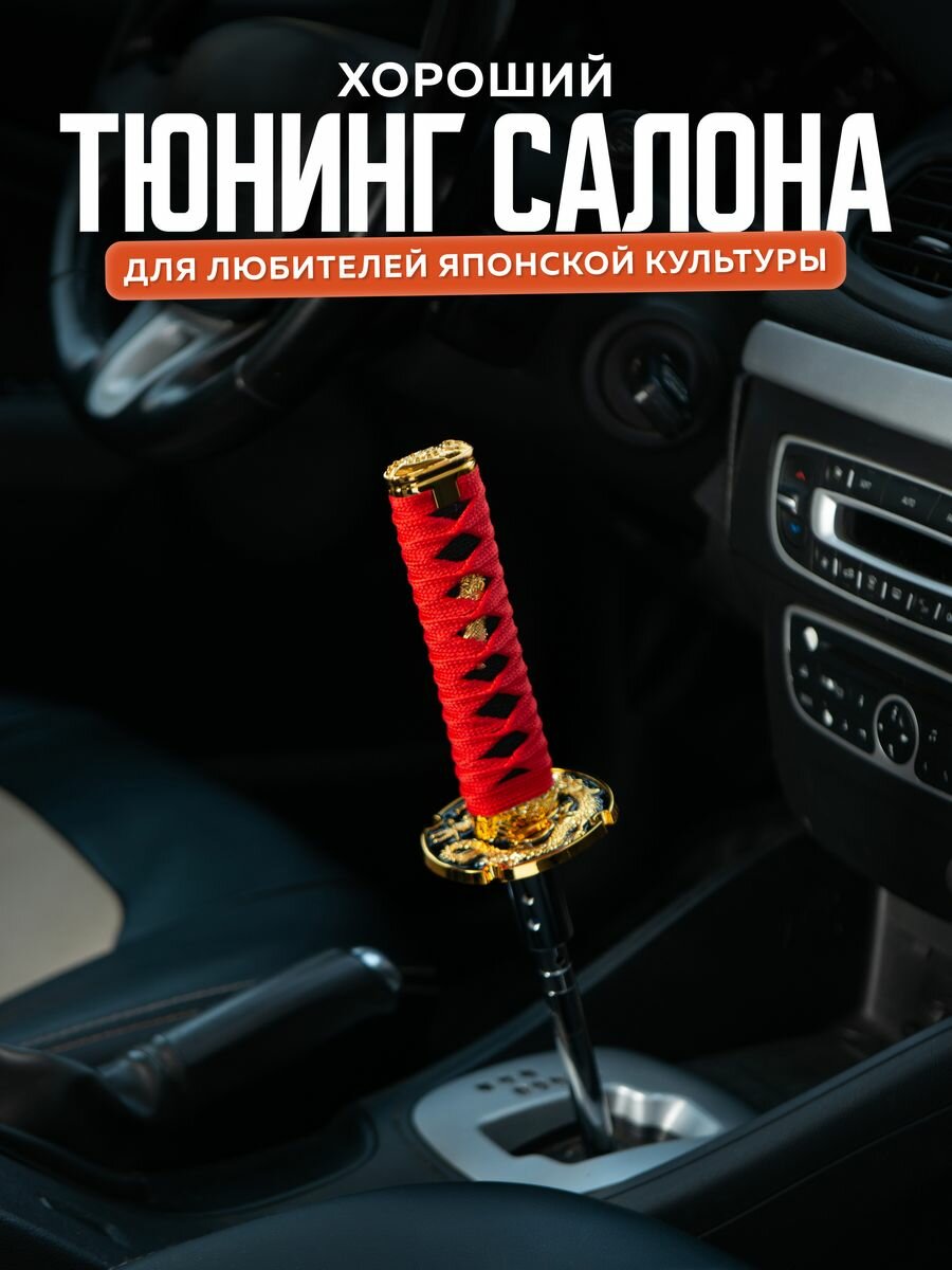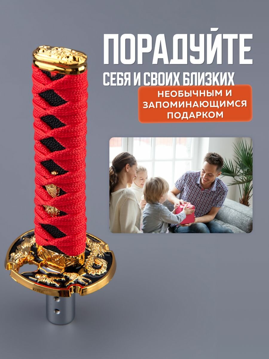 СохранитьНасадка на ручку кпп универсальная в форме катаны Меч самурая, 15 см, красный интересное: