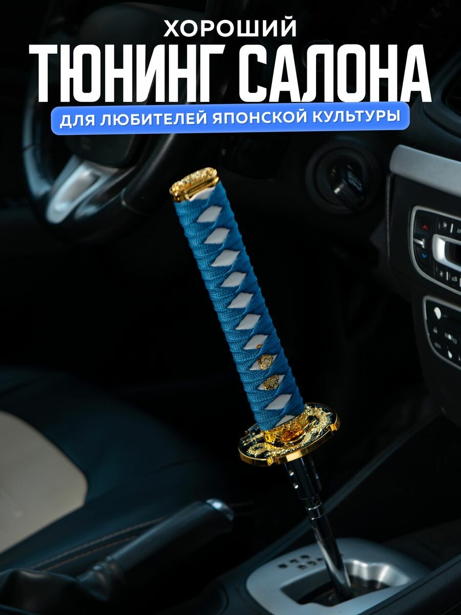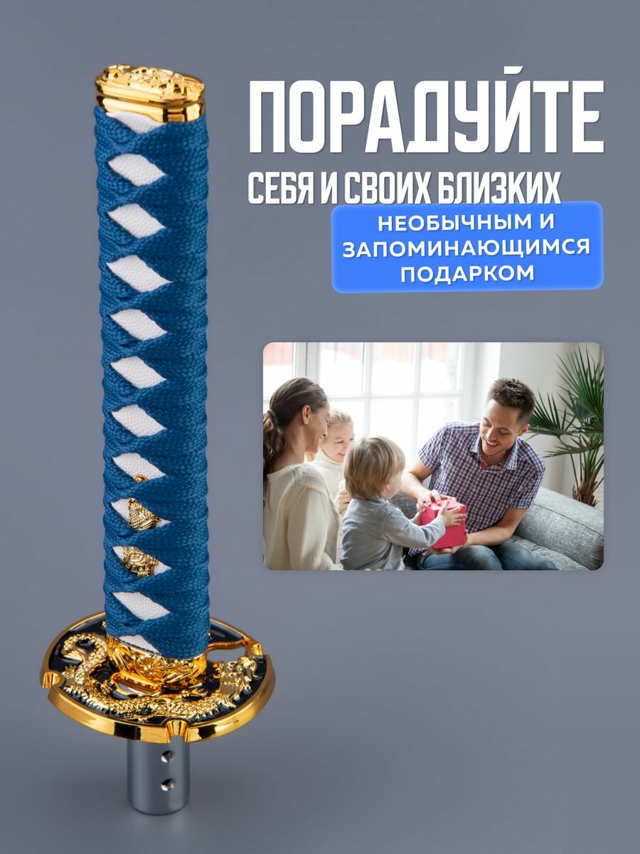 СохранитьНасадка на ручку кпп универсальная в форме катаны Меч самурая, 20 см, синий интересное: