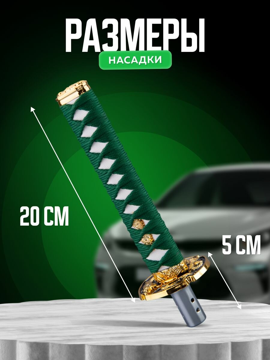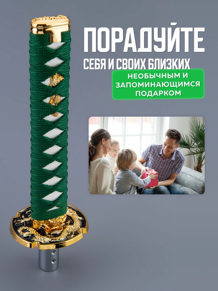 СохранитьНасадка на ручку кпп универсальная в форме катаны Меч самурая, 20 см, зеленый интересное: