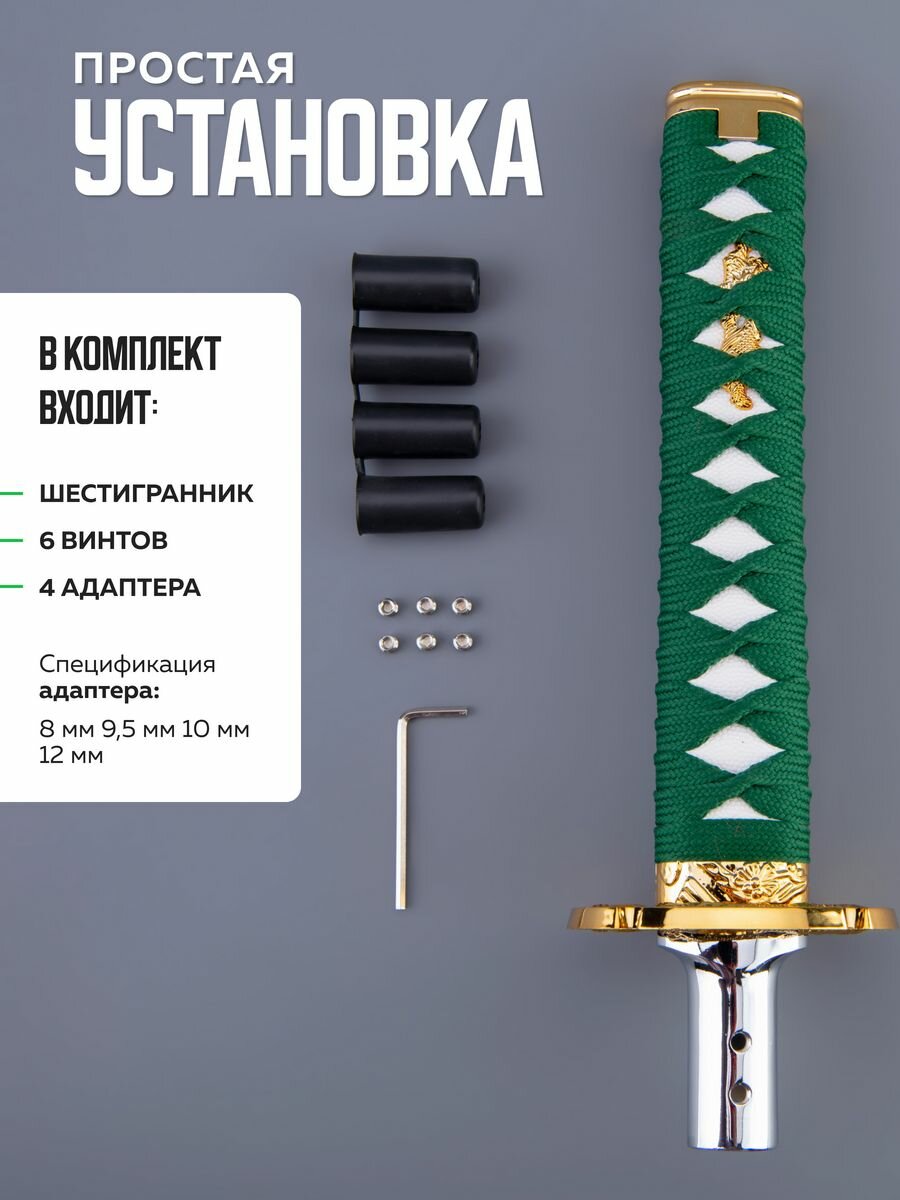 Ниже Вы можете прочитать отзывы на Насадка на ручку кпп универсальная в форме катаны Меч самурая, 20 см, зеленый, ознакомится с подробными характеристиками, посмотреть интересные обзоры и фотографии на Насадка на ручку кпп универсальная в форме катаны Меч самурая, 20 см, зеленый.