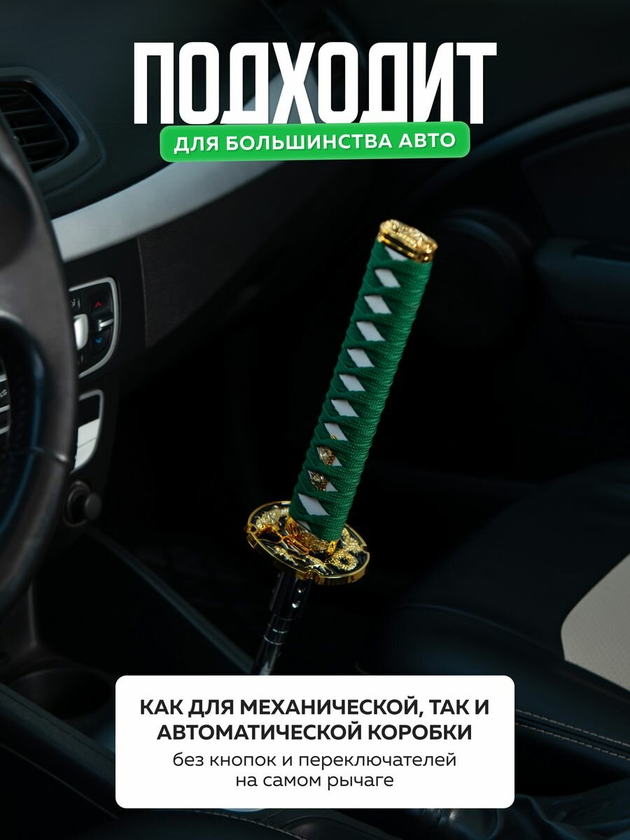 Купить Насадка на ручку кпп универсальная в форме катаны Меч самурая, 20 см, зеленый