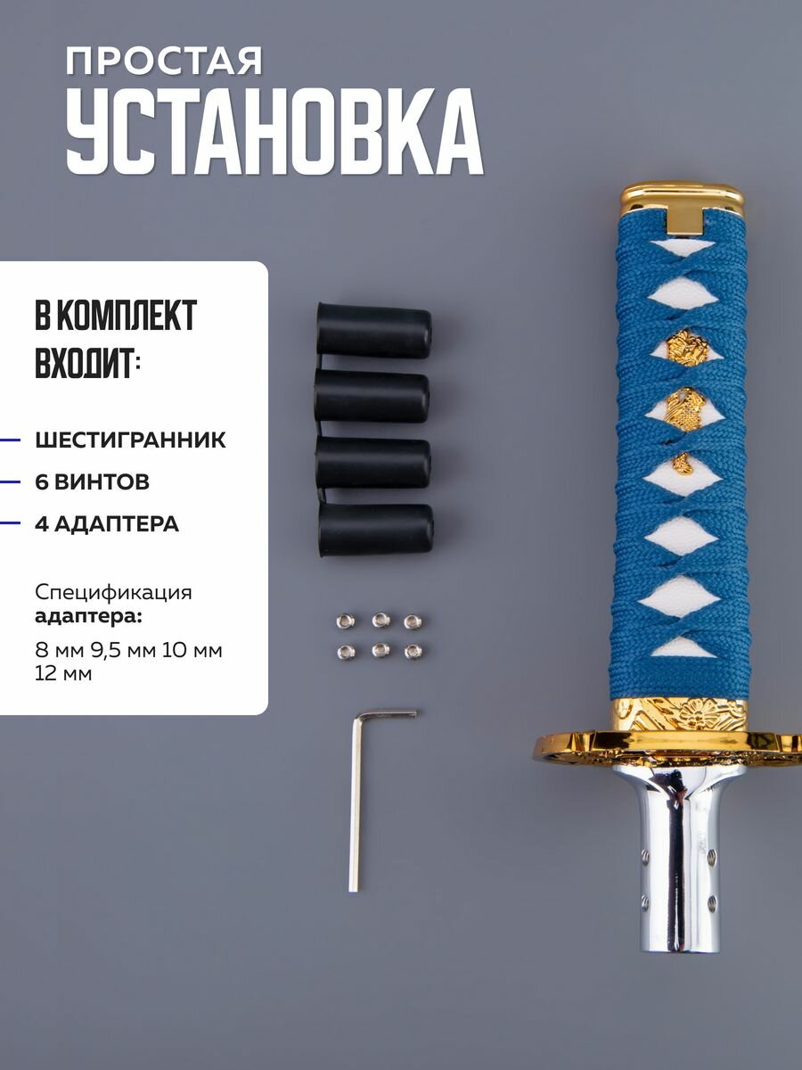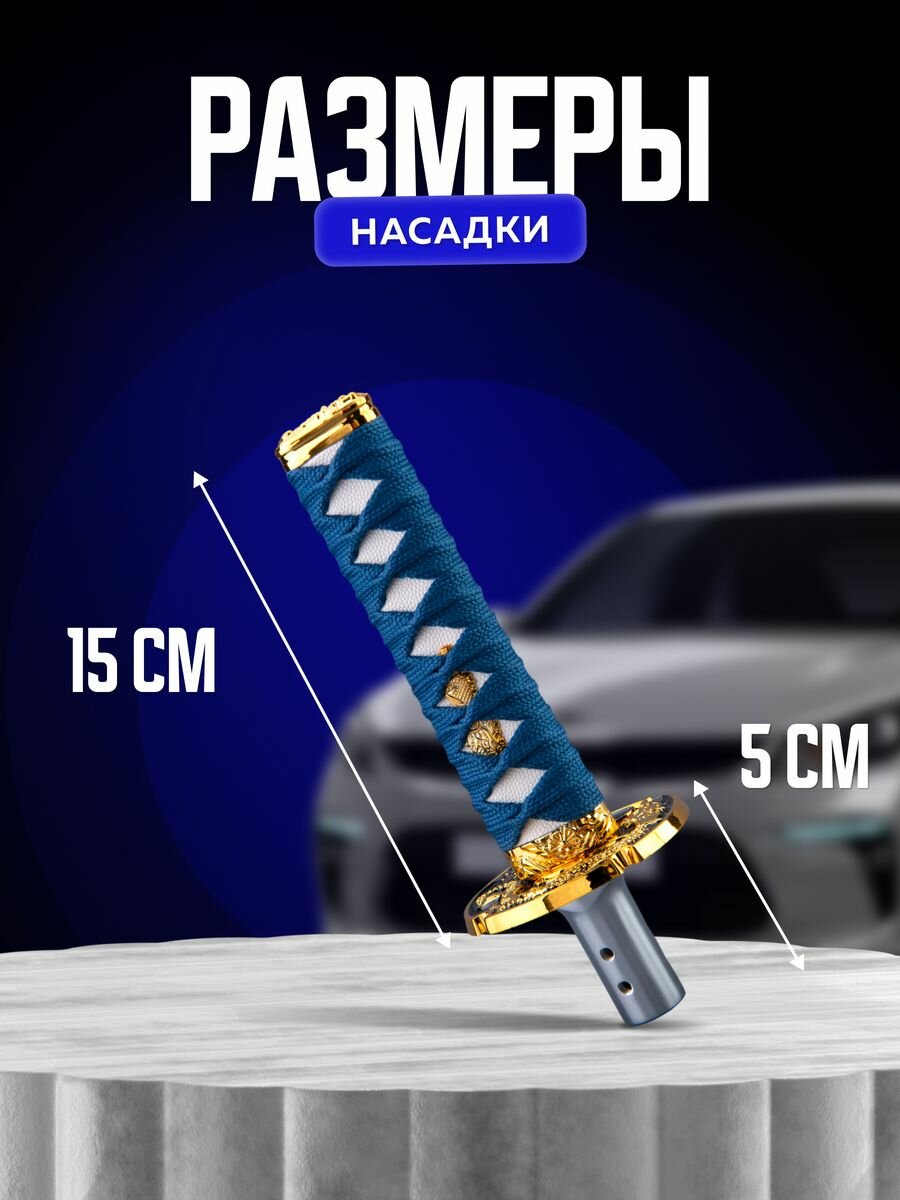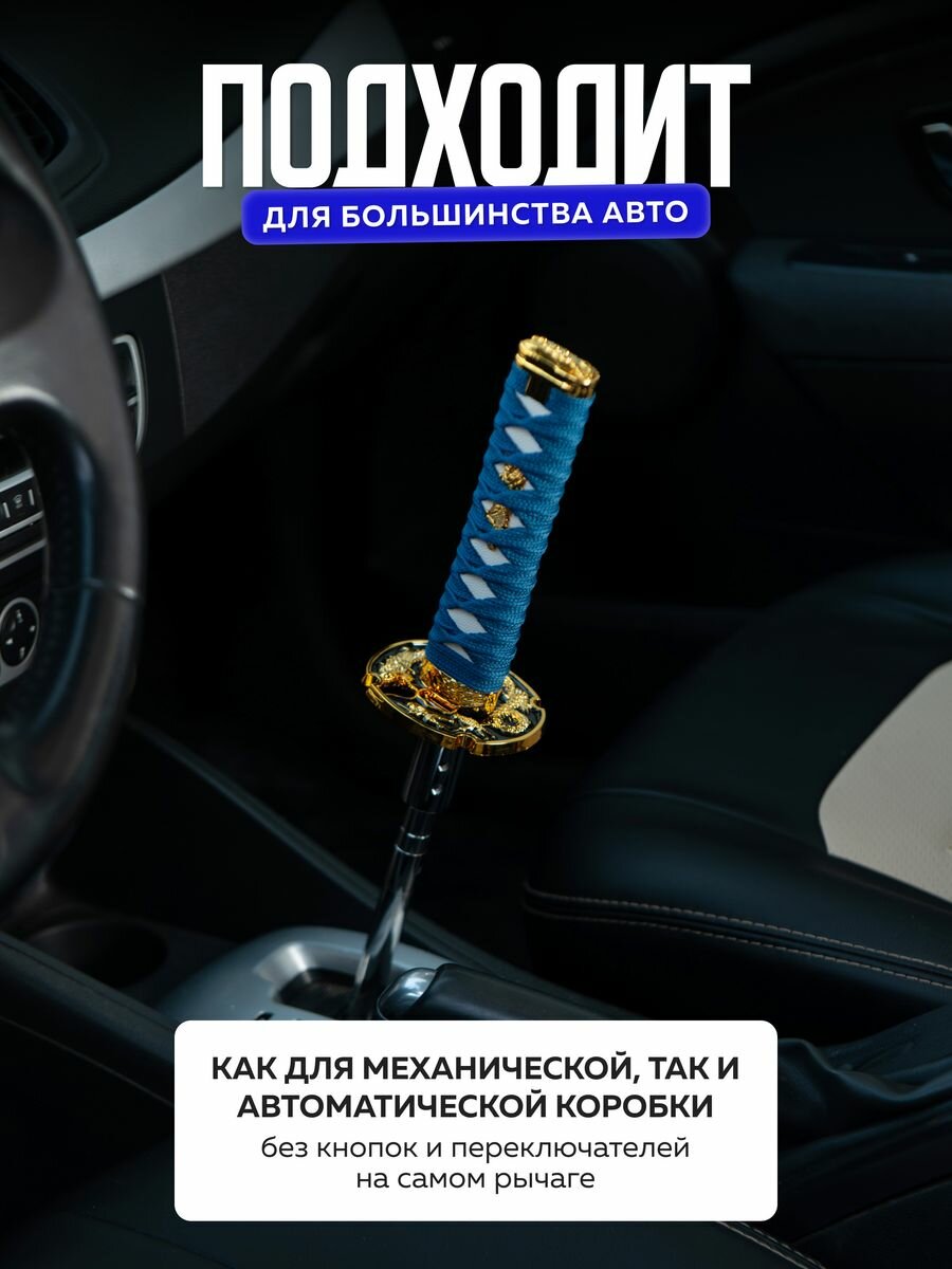 Купить Насадка на ручку кпп универсальная в форме катаны Меч самурая, 15 см, синий