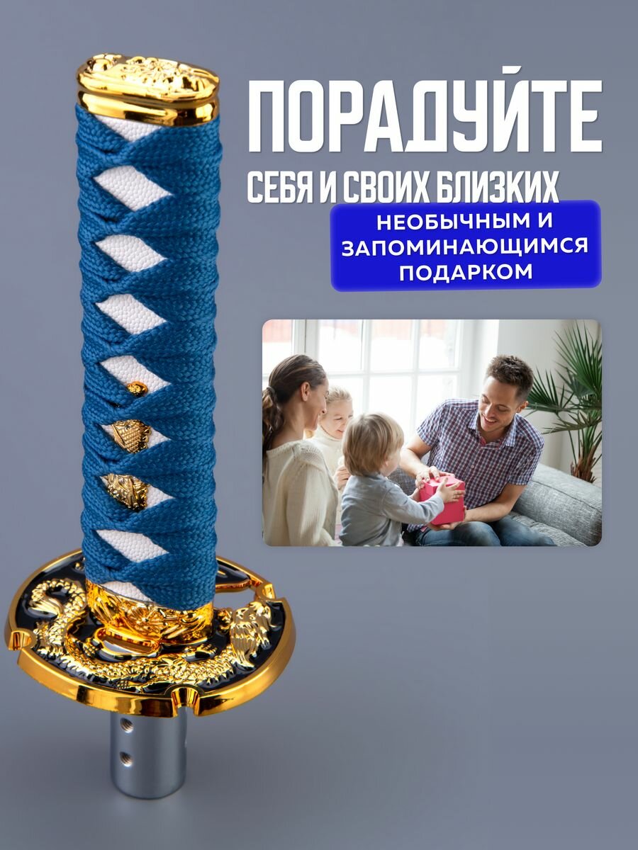 СохранитьНасадка на ручку кпп универсальная в форме катаны Меч самурая, 15 см, синий интересное: