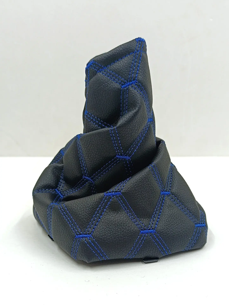 Купить Чехол КПП, пыльник на ВАЗ-11183, ВАЗ-11193 Лада Калина-1 (Lada Kalina-1) - черный с синей тройной строчкой "ромб"