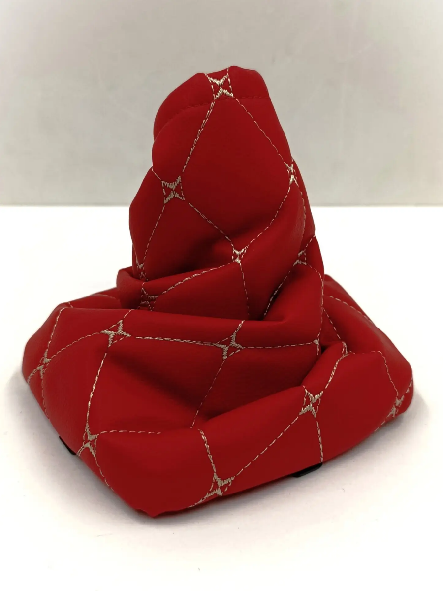 Купить Чехол КПП, на ВАЗ-11183, ВАЗ-11193 Лада Калина-1 (Lada Kalina-1) - красный с бежевой строчкой "ромб-бабочка"