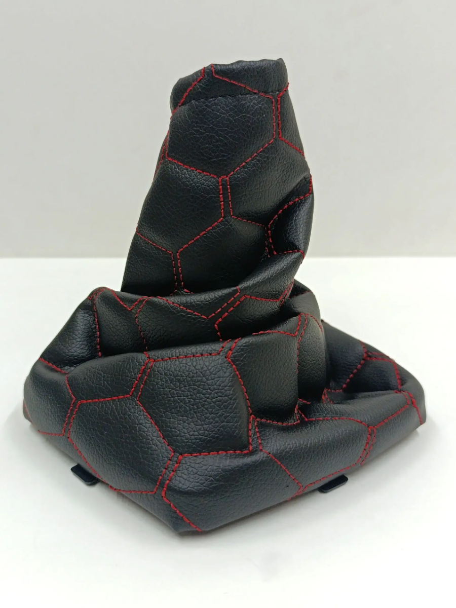 Купить Чехол КПП, пыльник на ВАЗ-11183, ВАЗ-11193 Лада Калина-1 (Lada Kalina-1) - черный с красной строчкой "соты"