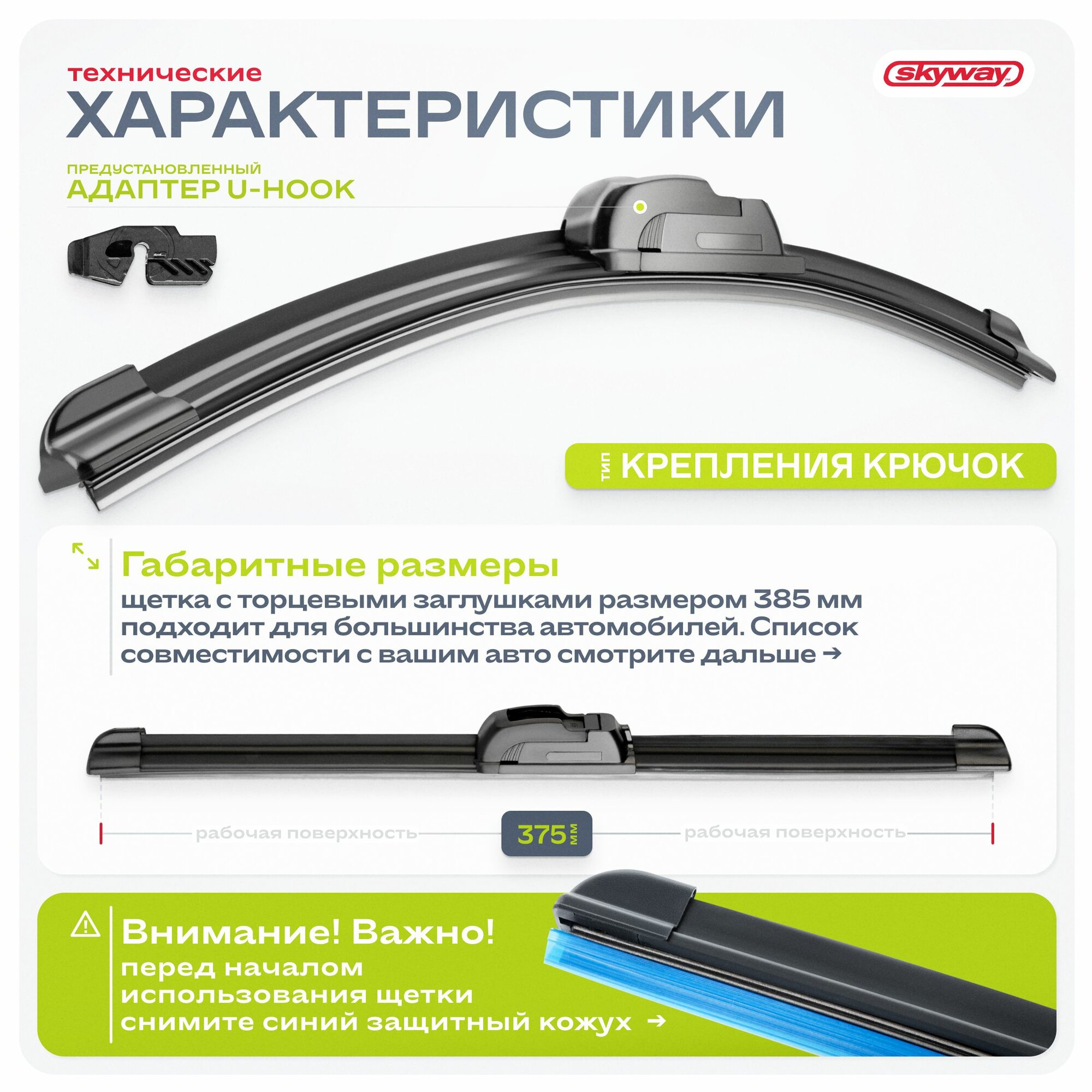 Щетка стеклоочистителя бескаркасная Skyway 18"/450 мм в пакете