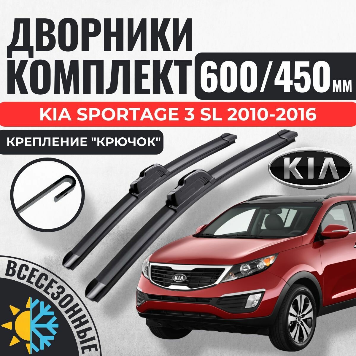 600 450 Щетки стеклоочистителя Kia Sportage SL 3 2010-2014 5 дв. / Дворники бескаркасные Киа Спортейдж интересное: