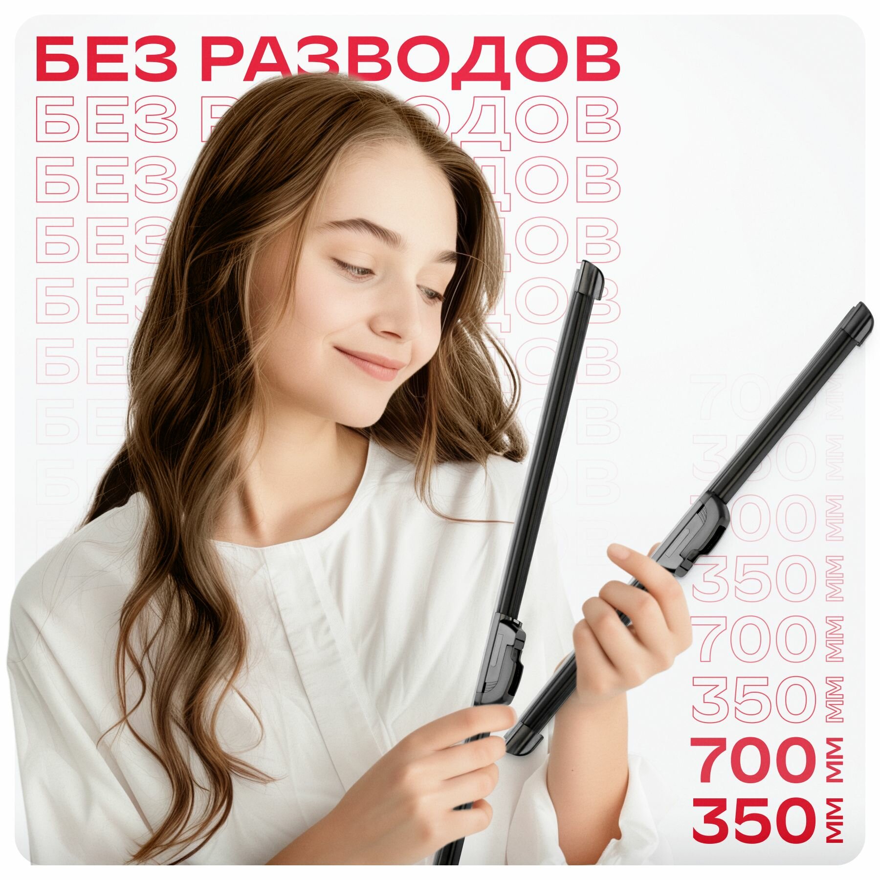 Дворники автомобильные бескаркасные 350 350 для Лада 2101, 2102, Лада 2103, 2104, 2105, 2106, 2107; LADA ВАЗ Niva; Land Rover Defender; Jeep Wrangler II