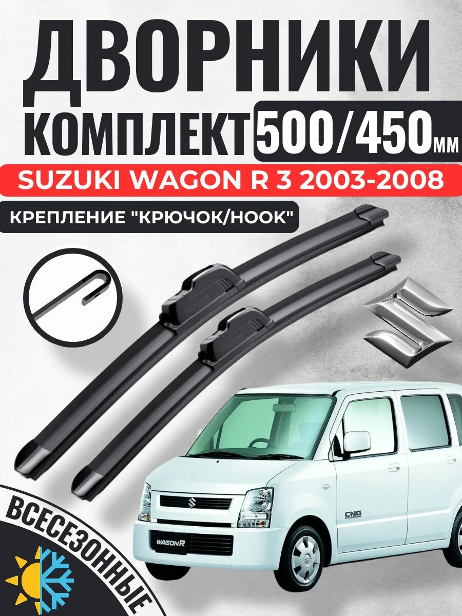 500 450 Щетки стеклоочистителя Suzuki Wagon R 3 2003-2008 / Дворники бескаркасные Сузуки Вагон Р интересное: