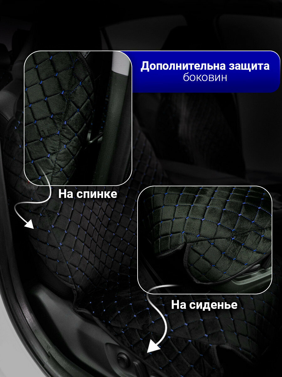 Купить Накидки автомобильные комплект в салон, универсальные, велюр черный с синей строчкой.