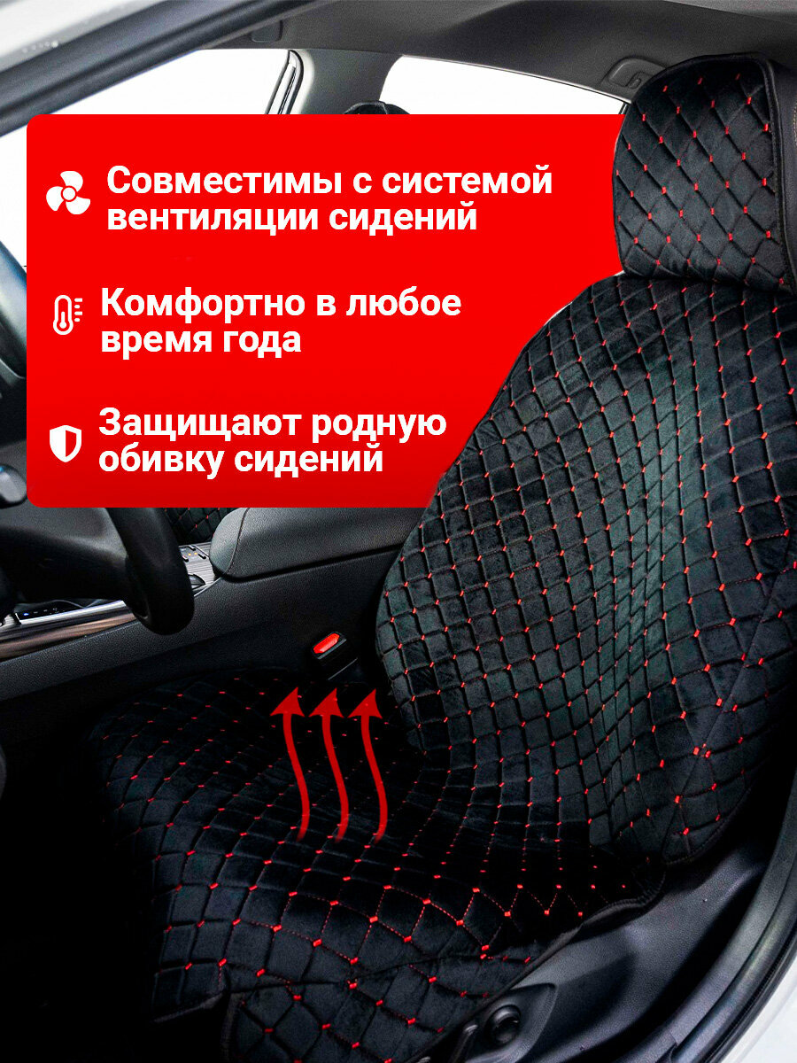 Накидки автомобильные для передних сидений, универсальные, велюр черный с красной строчкой.