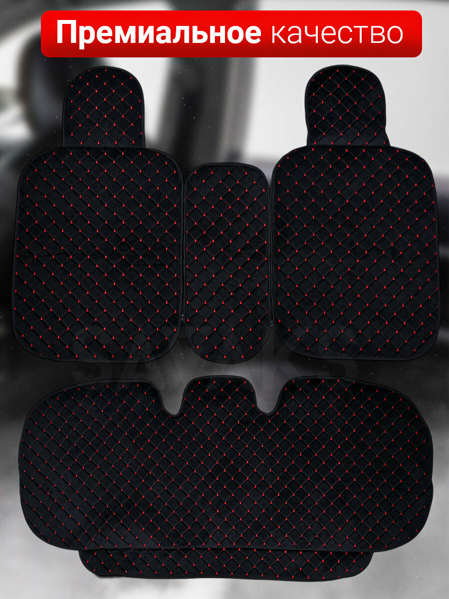 Купить Накидки автомобильные комплект в салон, универсальные, велюр черный с красной строчкой.
