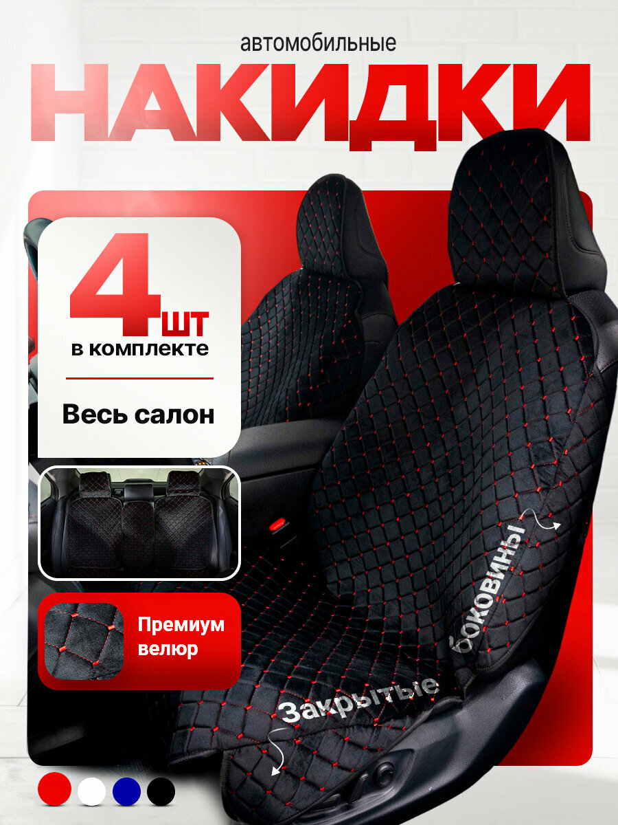 СохранитьНакидки автомобильные комплект в салон, универсальные, велюр черный с красной строчкой. интересное: