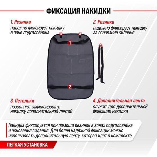 Защитная накидка на спинку сиденья автомобиля серая с карманами 55*37 см
