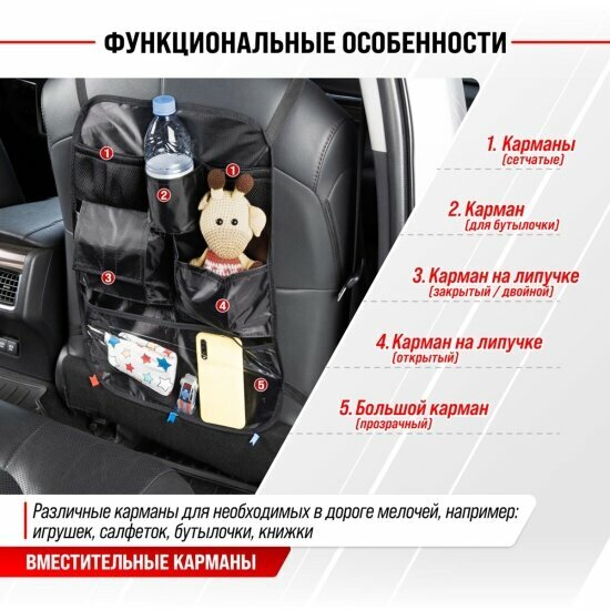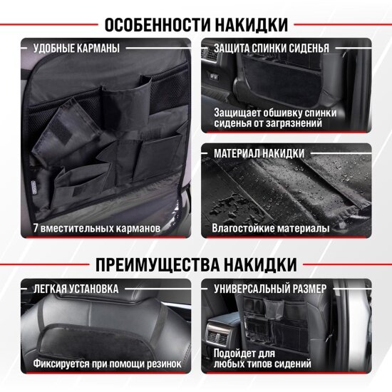 Защита спинки сиденья-органайзер ТМ Skyway SKYWAY ПВХ 7 карманов Черный интересное: