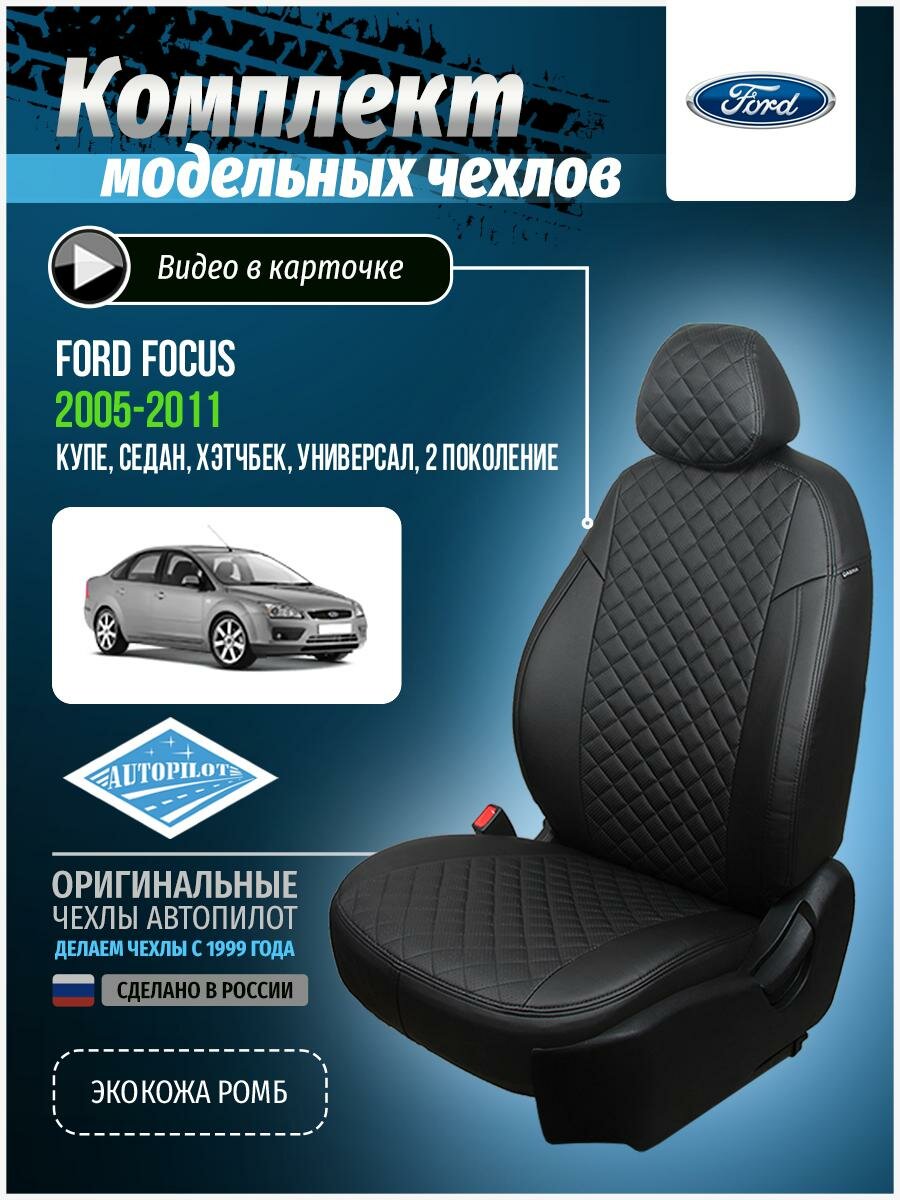 СохранитьЧехлы Автопилот для Ford Focus II Comfort Sd/Hb/Wag с 05-11г. Экокожа, ромб, черный, черный. интересное: