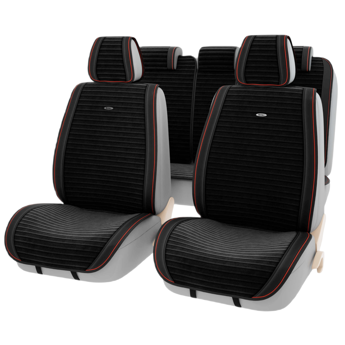 Комплект каркасных чехлов 5D CarFashion Consul Plus, чёрные, отстрочка серая